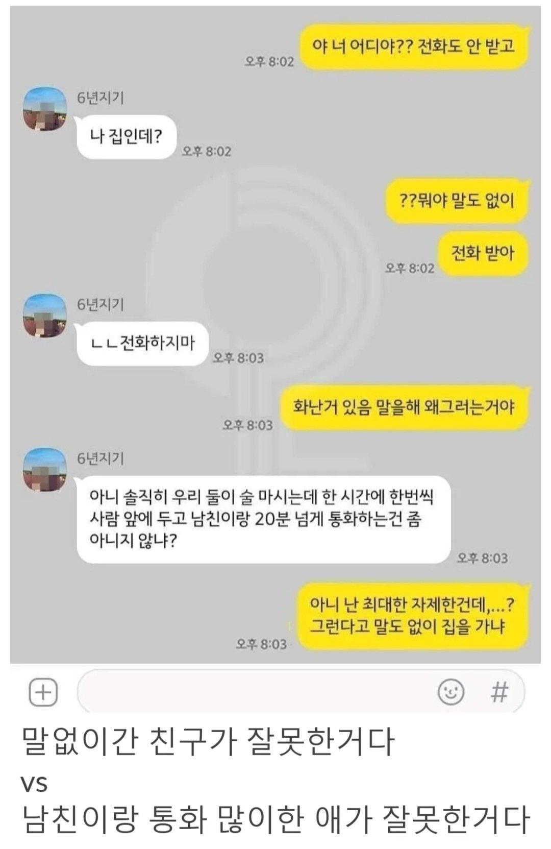 허 나도 당한적 있어… 나를 얼마나 좆같이 생각했으면ㅋㅋㅋㅋ 그런 남친새끼를 감싸도는 행태에 질렸는데 그 놈이랑 결혼한다길래 손절함
