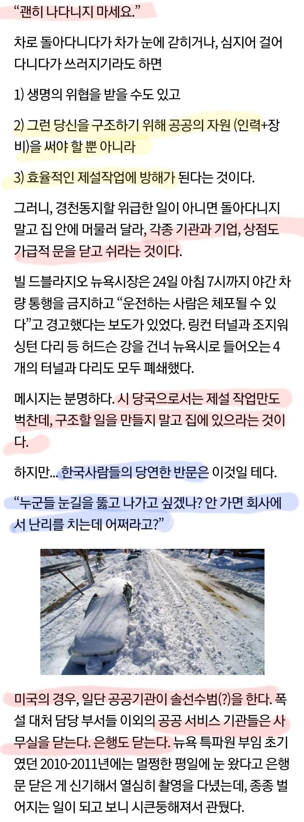사실 자연재해로 휴무 돌리는 이유가 인명피해를 줄이려고 그런건데 일반 기업들이 쉰다고한들 은행,관공서가 정상업무하면 사람들은 밀린 개인 용무 보겠다고 또 겨나옴...