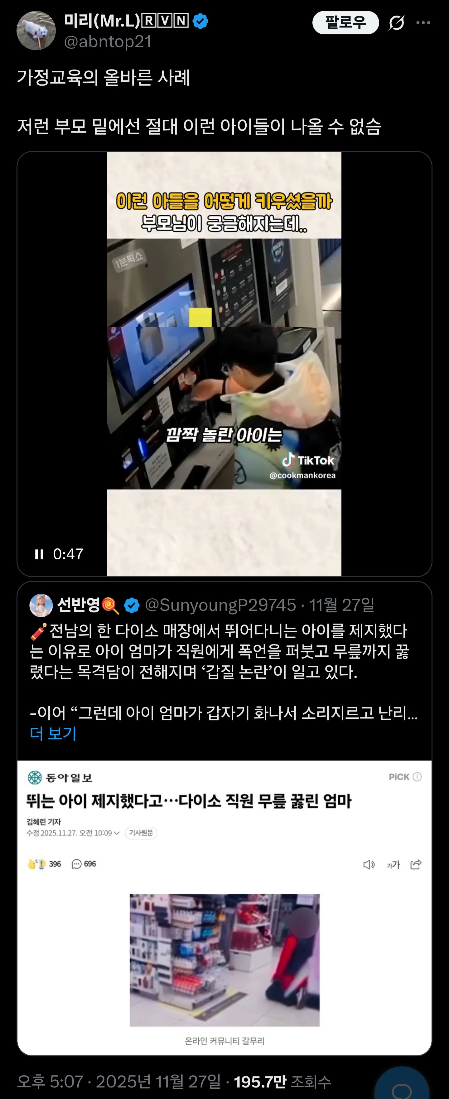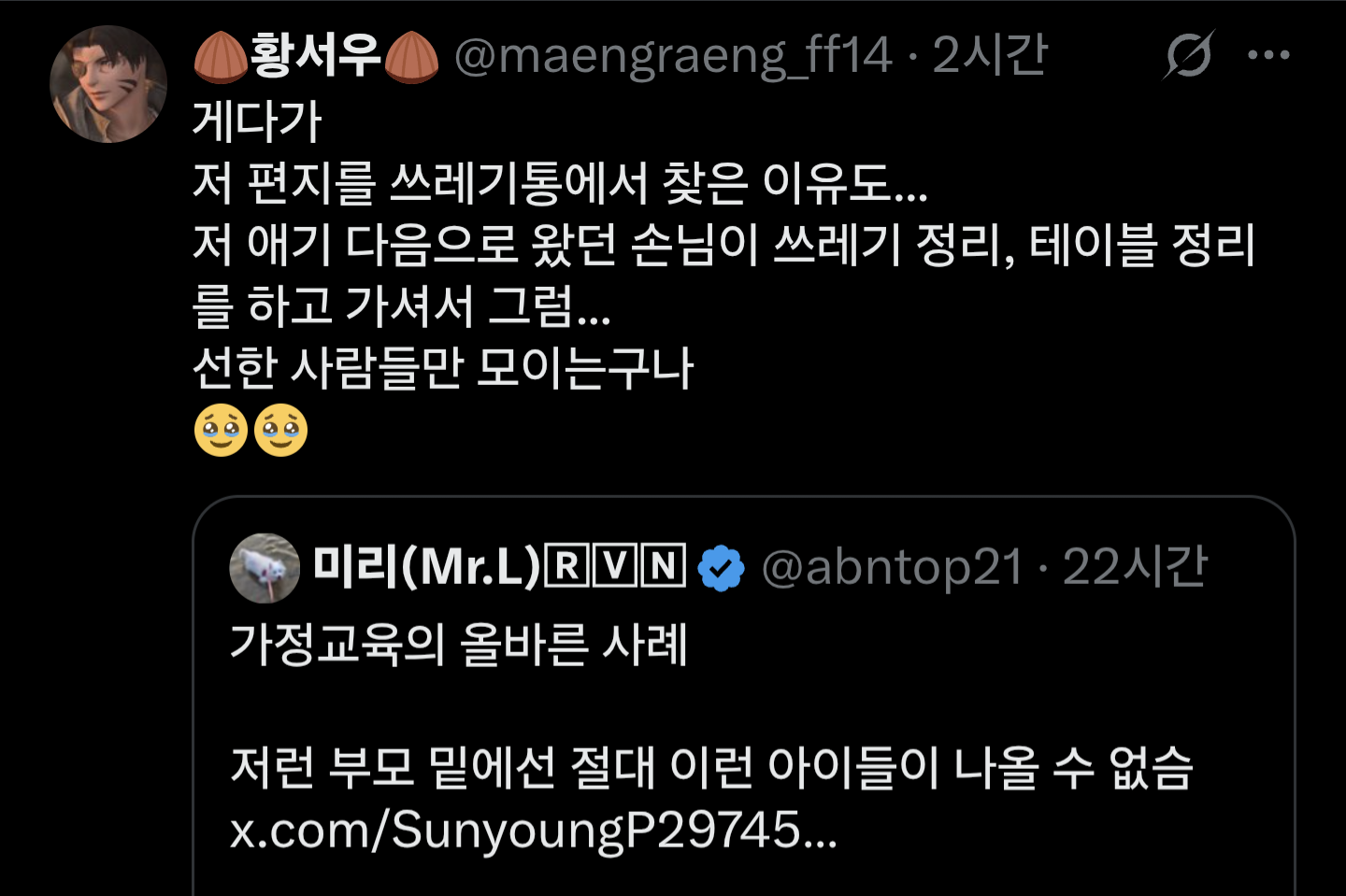 [흥미돋]무인카페에 얼음 쏟은 초등학생의 행동 작성자enigma|작성시간25.11.28|조회수38,442 목록 댓글 62 글자크기 작게가 글자크기 크게가 출처: https://x.com/abntop21/status/1993954830625460481가정교육의 올바른 사례 ㄹㅇ다이소 갑질 진상이랑 ㅈㄴ 비교되네 다음검색 현재 게시글 추가 기능 열기 북마크 공유하기 신고 센터로 신고 댓글 댓글 62 댓글쓰기 답글쓰기 댓글 리스트 작성자하얀마음백범김구 | 작성시간 25.11.28 애도 착하고 치워준 손님도 너무 착해ㅠㅠ 작성자김치프라이스 | 작성시간 25.11.28 ㅠㅠ 눈물나 작성자붕빵퀸 | 작성시간 25.11.28 ㅠㅠ 쓰레기 치워주신 손님도 너무 착해 ㅠㅠ 작성자초코빵초코빵 | 작성시간 25.11.28 헐 나 눈물 ㅜㅜ 애기착해 행복한일 가득하길!! 작성자하늘땅별땅땅땅땅 | 작성시간 25.11.28 아이구 착해라🥹🥹 댓글 전체보기