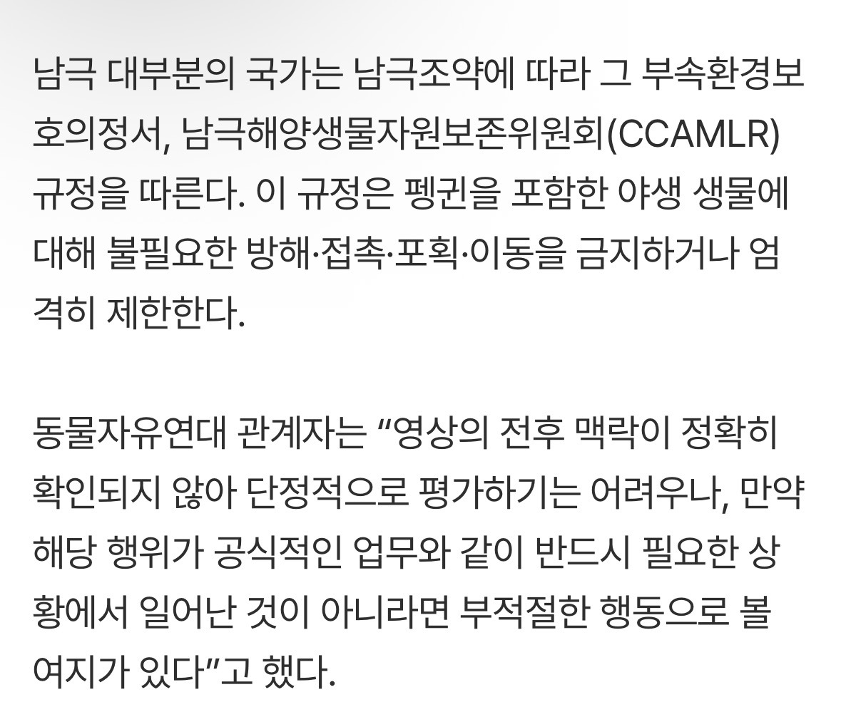 답댓글 작성자sawww 작성시간 25.12.02 남극 갈거면 펭귄같은 야생동물에 간섭금지인건 당연히 알고갔을텐데 저러는게 참