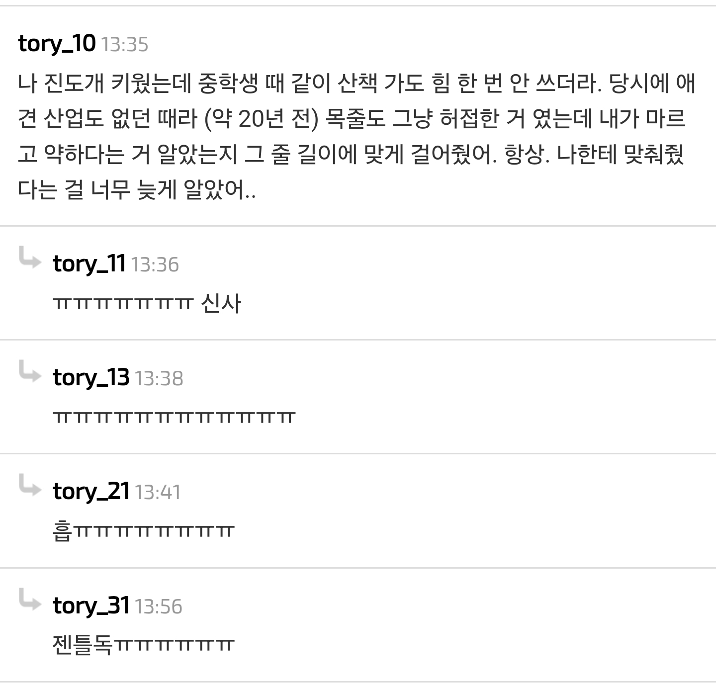 작성자젠 니 작성시간 25.11.29 헐 그러네 한번도 산책할때 당긴다는 느낌이 없었어 힘들다는것도.. 초등학생때였는데..