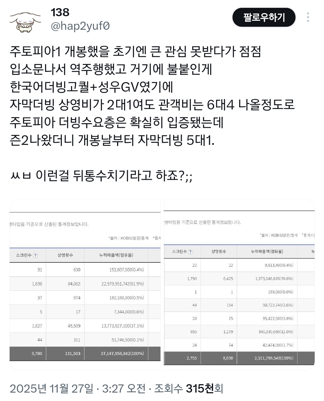 작성자이지외단 작성시간 25.11.29 주토피아는 더빙이지
