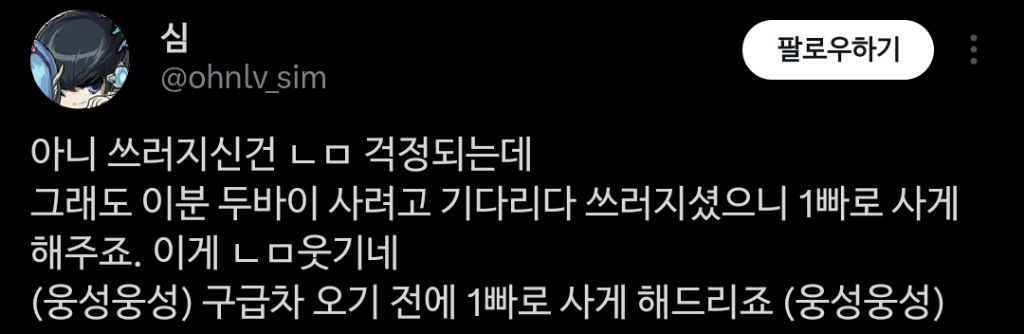 [흥미돋]역시 탄수화물 먹고 사는 사람들이라 정이 많네.twt 작성자로키도키|작성시간25.11.28|조회수51,043 목록 댓글 38 글자크기 작게가 글자크기 크게가 출처: https://x.com/ohnlv_sim/status/1994099931456708892?t=V3Flk8Ngk1AZQy6OdyazNg&s=19 다음검색 현재 게시글 추가 기능 열기 북마크 공유하기 신고 센터로 신고 댓글 댓글 38 댓글쓰기 답글쓰기 댓글 리스트 작성자고슴도치의 비행 | 작성시간 25.11.29 와 진짜 세심하고 다정하닼ㅋㅋㅋㅋㅋㅋㅋㅋㅋㅋㅋㅋㅋㅋㅋㅋㅋㅋ 작성자박재범깔 | 작성시간 25.11.29 ㅋㅋㅋㅋㅋㅋㅋ ㄱㅇㅇ ㅠㅠ.. 작성자김람우 | 작성시간 25.11.29 진짜 다정하다ㅠㅠ감동 작성자진라면 약간매운맛 | 작성시간 25.11.29 ㅋㅋㅋㅋㅋㅋㅋㅋ 역시 탄수화물이 작성자꺼져칷씨 | 작성시간 25.11.29 정 존나 넘치네 댓글 전체보기