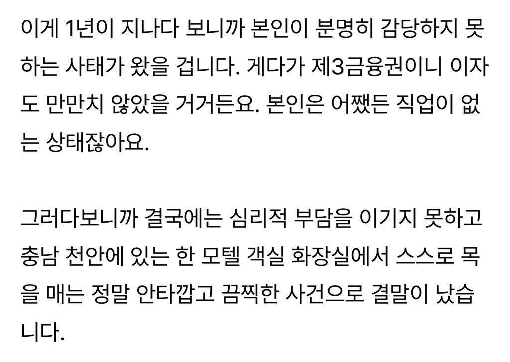 본인이 겪어본 일도 아니고 저 사람이 얼마나 힘들었을지도 모르면서 막말 진짜..