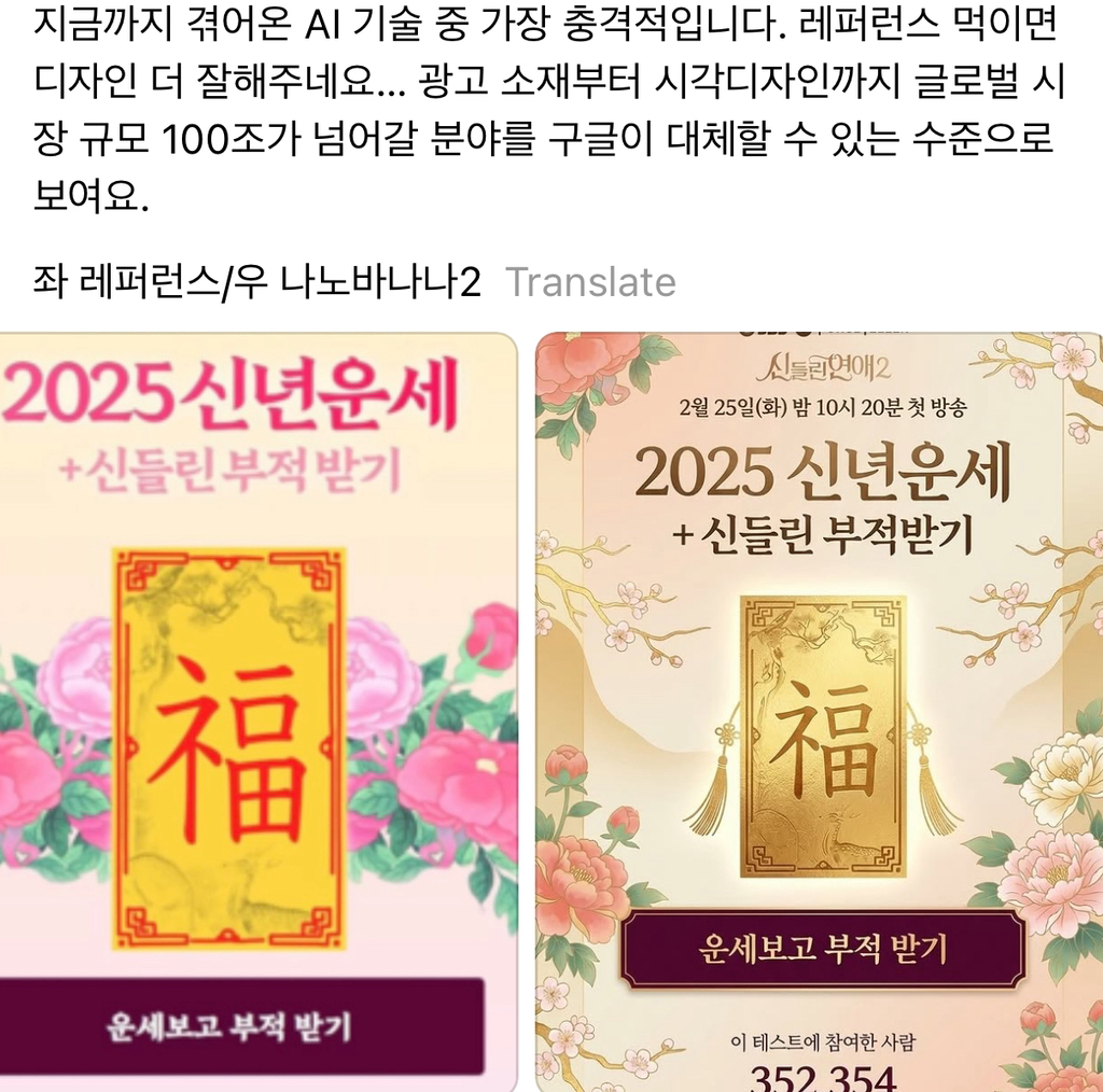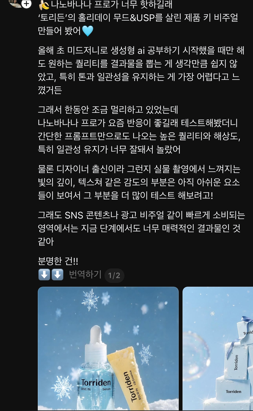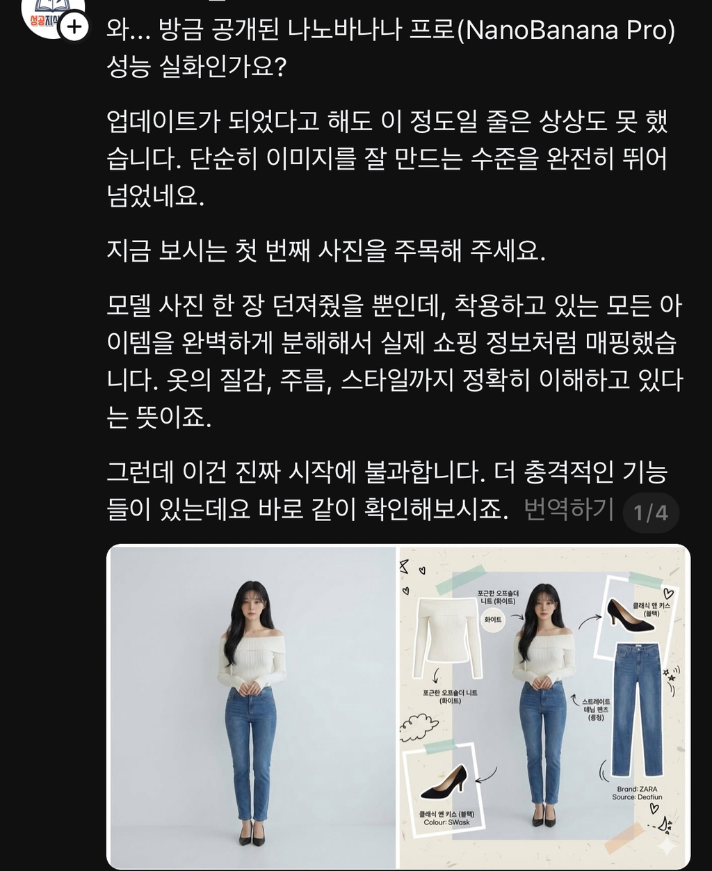 [흥미돋]사진사와 디자이너들 울게 만드는 이번 나노바나나 프로 업데이트 작성자오렌지조|작성시간25.11.28|조회수88,716 목록 댓글 598 글자크기 작게가 글자크기 크게가 출처: 여성시대 (오렌지조)이번에 업데이트 된 나노바나나 프로 성능을 서치하다가 놀랄만한 결과물들이 많이 봐서 글 써봄이게 ai로 만든 이미지라고? 싶은 것도 많음설원캐릭터 아트포스터 이미지를 예시로 주고 이 예시처럼 불 캐릭터의 아트포스터를 만들어 달랬더니 나온 결과물 다음검색 현재 게시글 추가 기능 열기 북마크 공유하기 신고 센터로 신고 댓글 댓글 598 댓글쓰기 답글쓰기 댓글 리스트 작성자마음의불을켜는존재 | 작성시간 25.12.02 와......... 작성자레몬상큼워터 | 작성시간 25.12.03 쩐다 작성자애거서크리스티 | 작성시간 25.12.03 근데 진짜 너무 잘 만들어서 오히려 기존 광고 이미지 신뢰도 더 떨어트리네 뭐가 ai고 뭐가 진짜인지 구분이 안 가니까 모든 제품을 믿을 수 없게 됨; 작성자딩딕 | 작성시간 25.12.03 이야 작성자다우니실뇌건조 | 작성시간 25.12.08 시박새끼야 ㅠ 다시 들어가 ㅠㅠ 댓글 전체보기