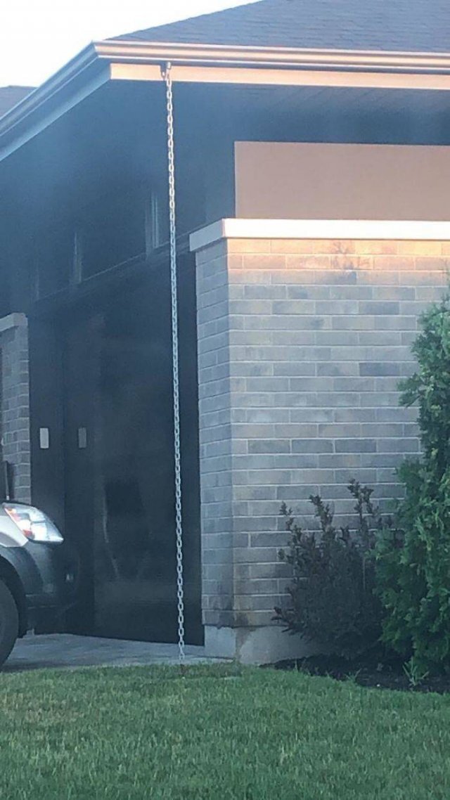 A : '레인 체인' 빗물받이통의 대안으로 사용됩니다.