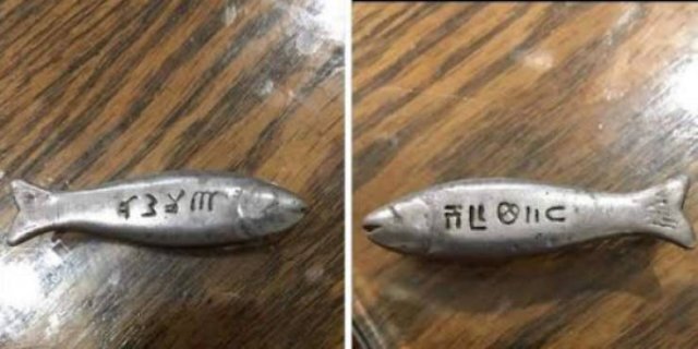 Q : 이상한 글씨가 써있는 물고기 모형을 찾았어! 뭘까?