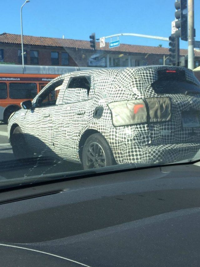 A : 테스트 주행중인 모델입니다. 아직 출시되지 않은 자동차의 형태와 선을 숨기기 위한 패턴입니다.