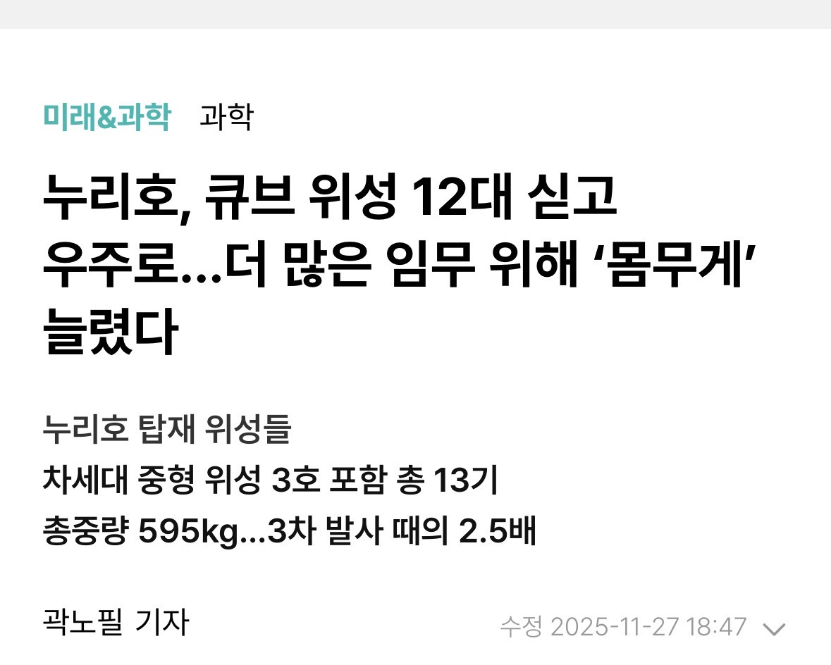 어허 위성을 좀 많이 실은것 뿐이예요 많이🤭