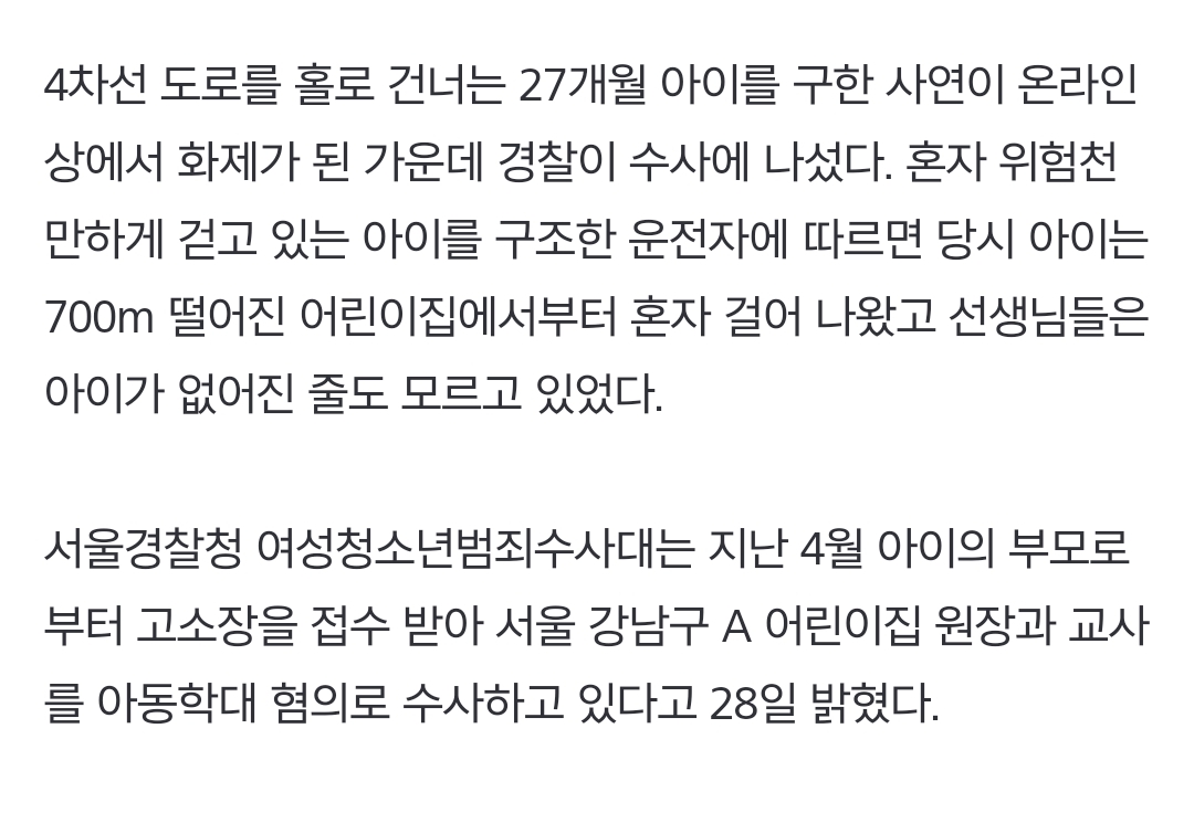 작성자땡삐아 작성시간 25.12.02 애가 사고로 죽을 수도 있는 상황이네 부모 심장 철렁했겠다