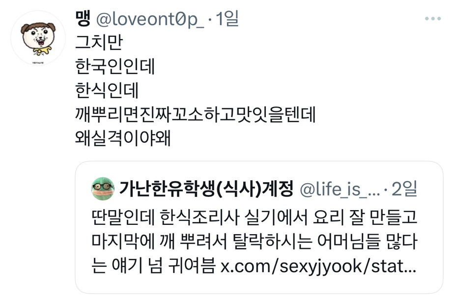 작성자이럴때일수록운동 작성시간 25.11.29 깨 외않되;; 한식의 완성이라고요