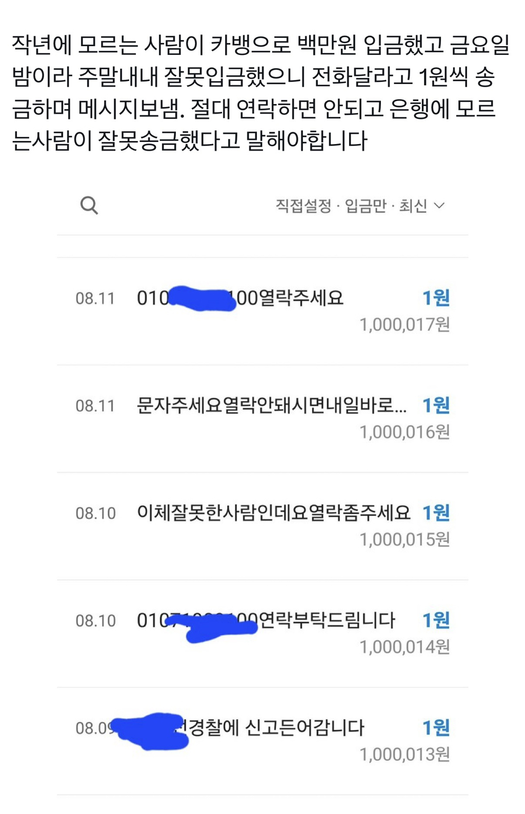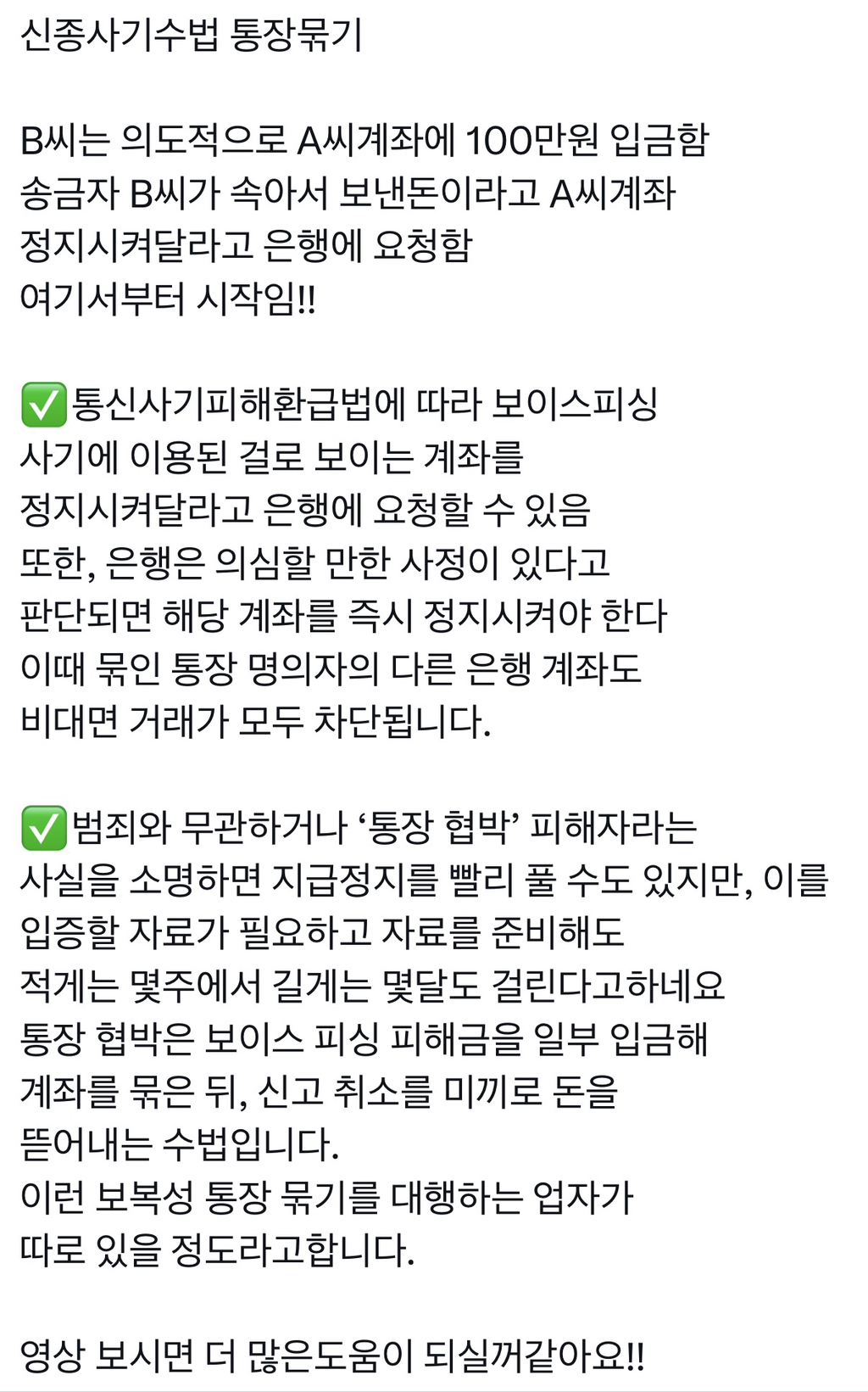 [스크랩] [흥미돋]신종사기수법 통장묶기…x 작성자Rooose|작성시간25.11.29|조회수11,192 목록 댓글 1 글자크기 작게가 글자크기 크게가 출처: https://x.com/binulove_/status/1994194866469765425큰 돈이 입금됐으면 은행에 알리기 다음검색 스크랩 원문 : *여성시대* 차분한 20대들의 알흠다운 공간 현재 게시글 추가 기능 열기 북마크 공유하기 신고 센터로 신고 댓글 댓글 1 댓글쓰기 답글쓰기 댓글 리스트 작성자웅앵융앵웅 | 작성시간 25.11.29 와 진짜 별 수법이 다있네 이런거 안봤으면 바로 저 연락처로 전화햇을듯 ㅠㅠ 댓글 전체보기