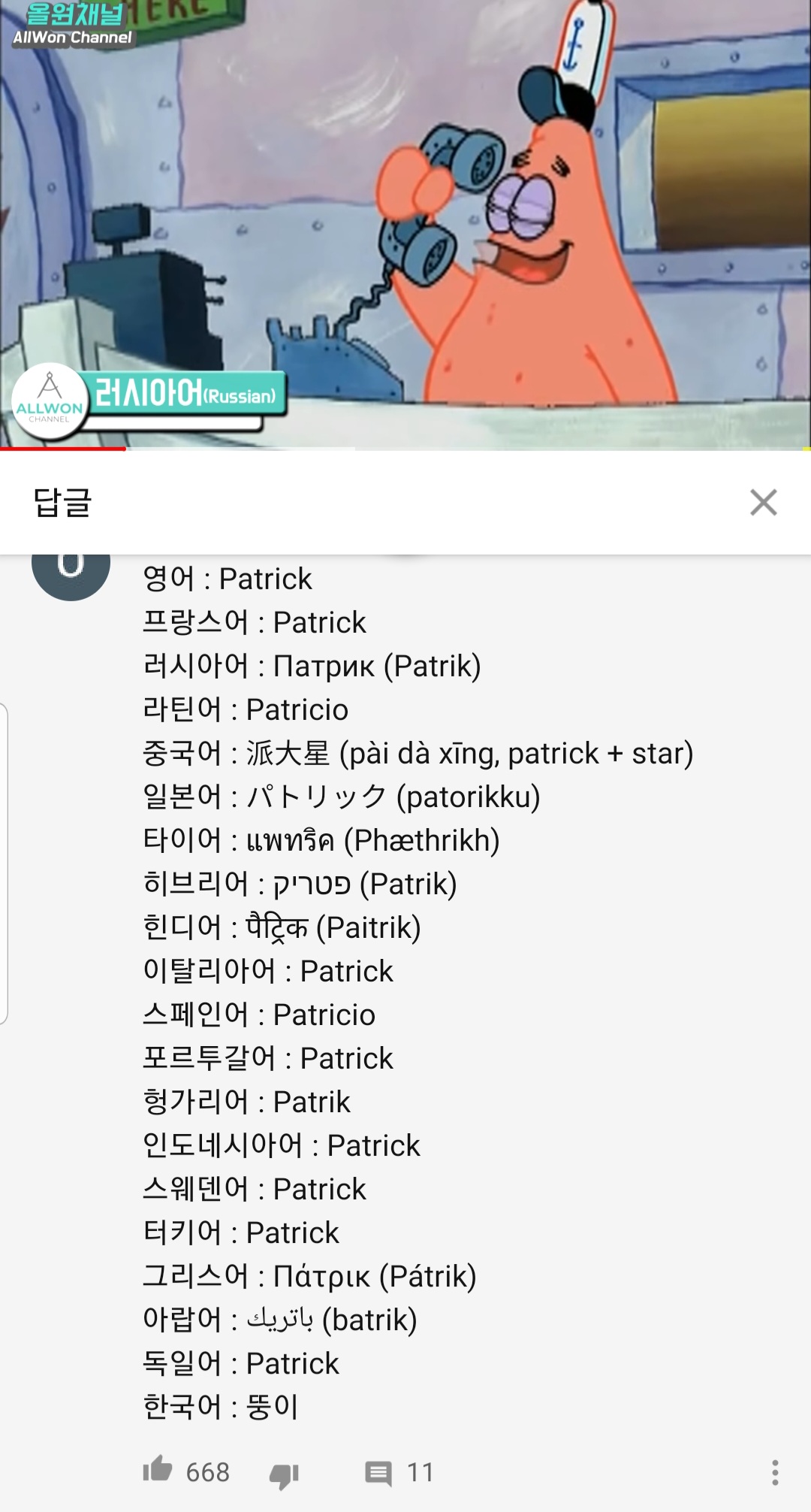 미국 본명: 패트릭 스타(Patrick star)