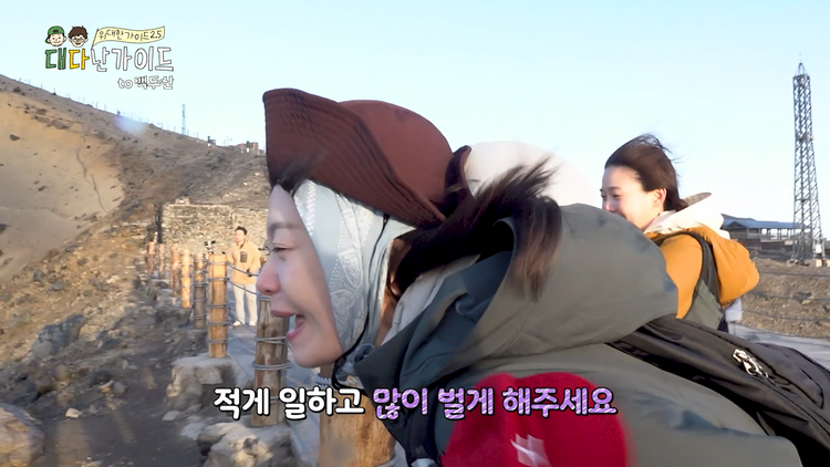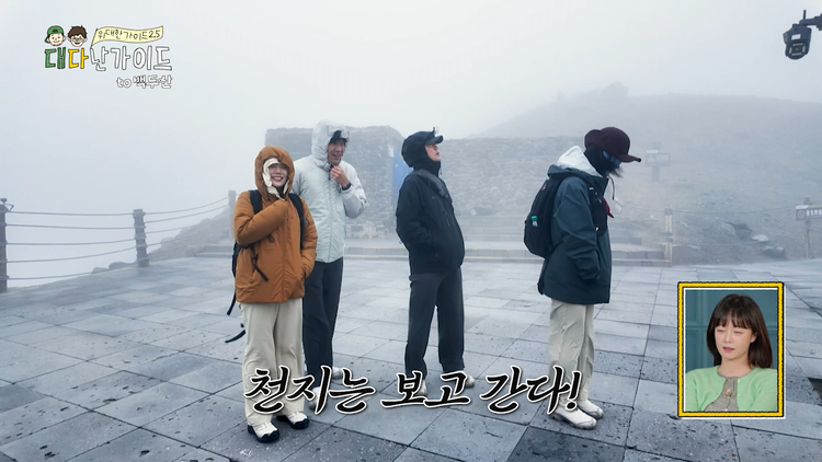 보일 듯 말 듯한 천지 모습에 다들 미련이 생기고