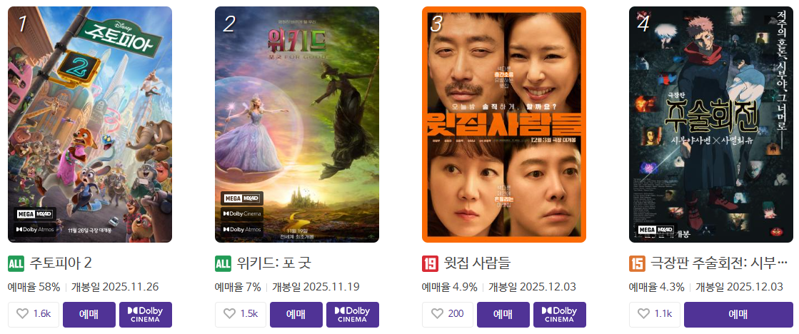 예매율 CGV, 롯시, 메박까지 전부 1위