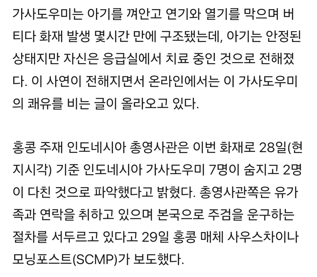 작성자을사년화이팅 작성시간 25.11.30 홍콩은 왠만하면 다 가사도우미써서ㅠㅠㅠ하... 제발 다들 버텨주시길 ㅠㅠ