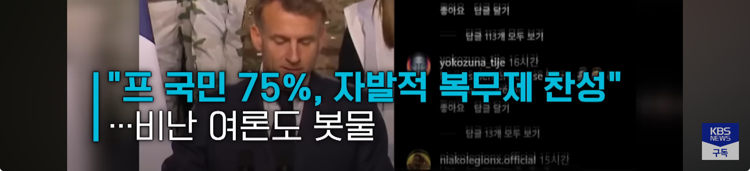 [여시뉴스데스크]자기는 미필이면서 징병제 부활? 마크롱 발표에 프랑스 청년들 부글부글 작성자(본인닉네임).|작성시간25.11.30|조회수2,290 목록 댓글 2 글자크기 작게가 글자크기 크게가 출처: https://youtu.be/m20o8hReYJ0?si=TUgMhZNQzuiU6cDq 다음검색 현재 게시글 추가 기능 열기 북마크 공유하기 신고 센터로 신고 댓글 댓글 2 댓글쓰기 답글쓰기 댓글 리스트 작성자계절 틈에 잠시 피는 낯선꽃처럼 | 작성시간 25.11.30 남자들 전쟁 왜이렇게일으키려고 안달임.. 작성자얘애옹아 | 작성시간 25.11.30 프랑스까지 무장할 필요가 있나...?? 댓글 전체보기