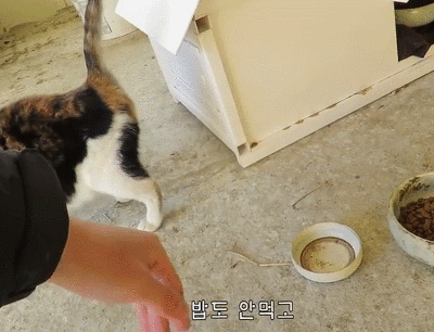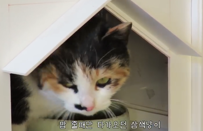 어쨌든 밥먹을 때만 먼저 다가오던 그런 삼색냥이가