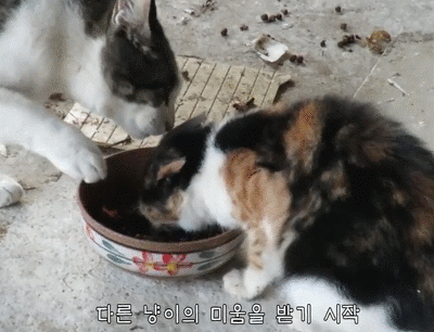 다른냥이들도 착한게 자기 영역에 들어온 냥이를 결국 겸상 하도록 받아주긴 줌..