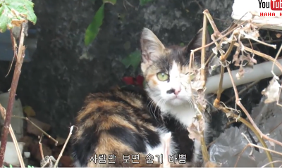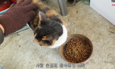 유튜버 믿고 다른냥이 영역에서 밥먹다가 텃세 오지게 당하는 삼색냥이..쭈굴쭈굴