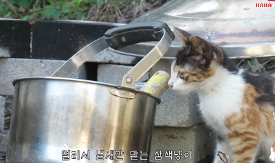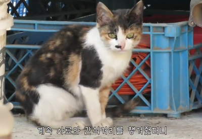 처음보는 삼색고양이가 등장했는데