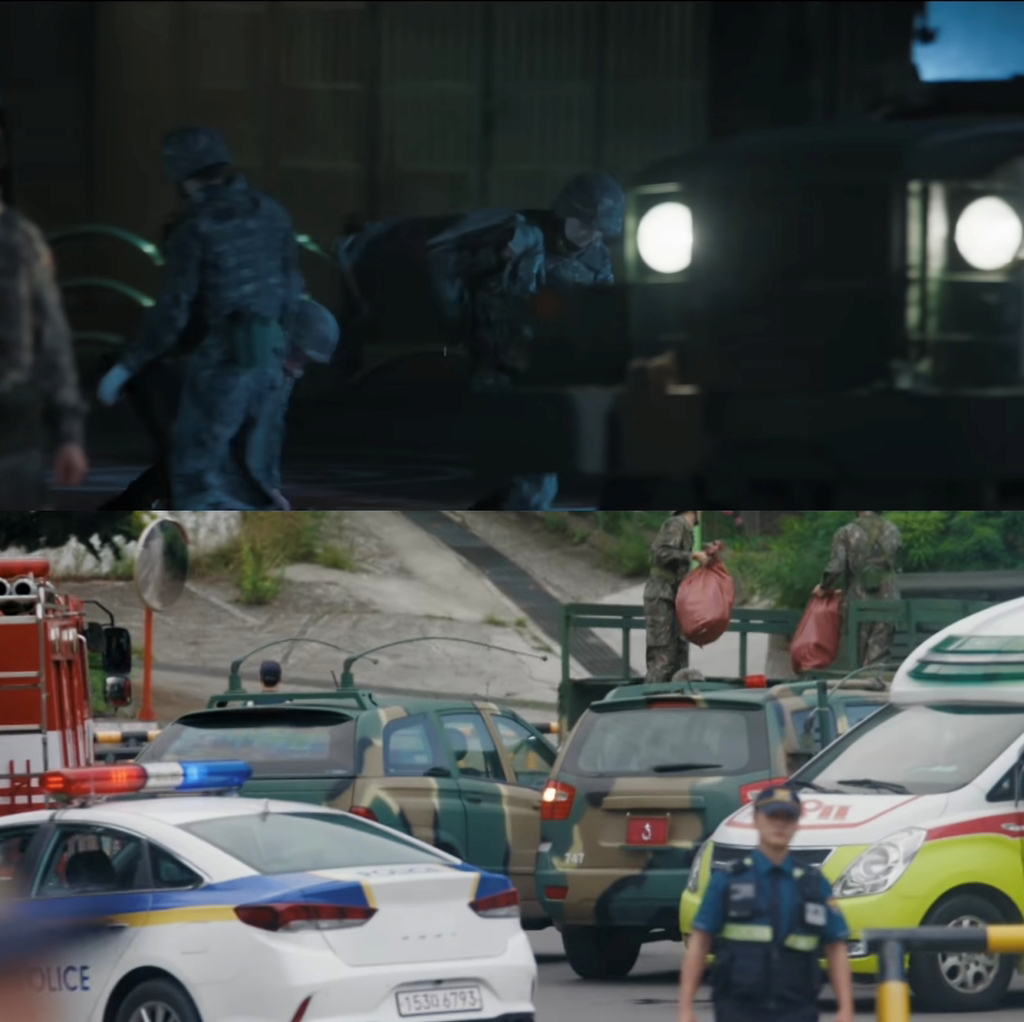 현장에 군용차량과 군인들이 있는 걸 보고 이상하다고 느낌