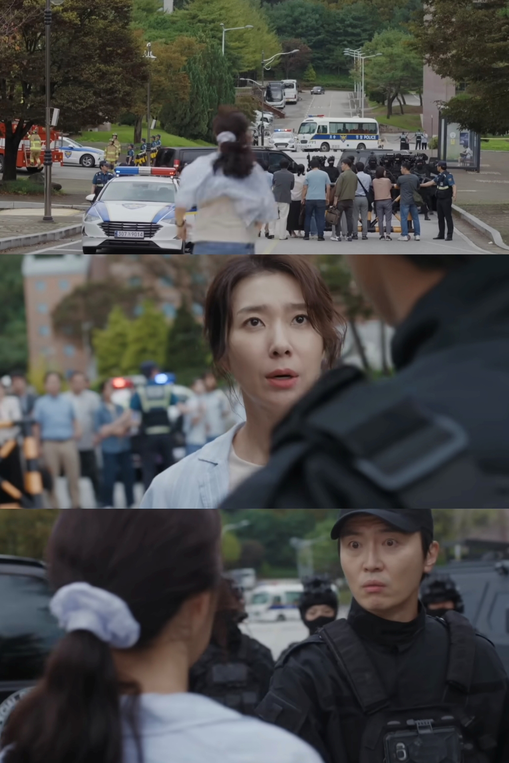 딸 민서를 등교시켜주다가 마을버스 폭발 사고 현장 옆을 지나가게 되는데