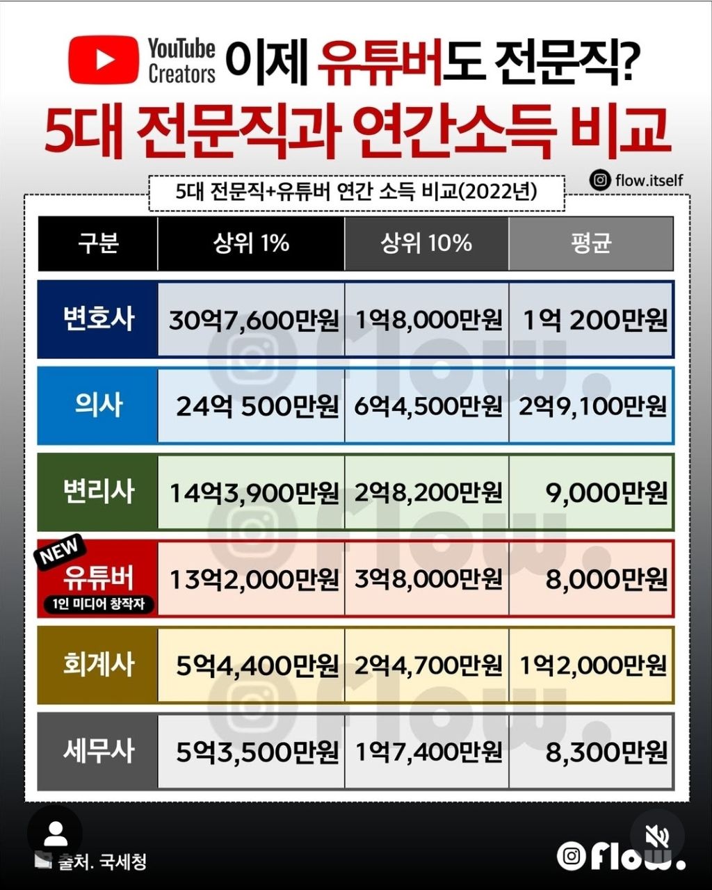 [스크랩] [기타]5대 전문직과 유튜버의 연간소득 비교 작성자올림샵|작성시간25.12.01|조회수27,523 목록 댓글 35 글자크기 작게가 글자크기 크게가 다음검색 스크랩 원문 : 이종격투기 현재 게시글 추가 기능 열기 북마크 공유하기 신고 센터로 신고 댓글 댓글 35 댓글쓰기 답글쓰기 댓글 리스트 답댓글 작성자에에에에에엣취 | 작성시간 25.12.01 여시가 들어가있는 단톡방은 무슨 단톡방이야?! 작성자히않하눼 | 작성시간 25.12.01 우왘ㅋㅋ 작성자에에에에에엣취 | 작성시간 25.12.01 와............ 작성자빵동네불주먹 | 작성시간 25.12.01 난 그래도 다시태어나라거 하면 전문직 할거임 작성자0.0..! | 작성시간 25.12.28 우와 댓글 전체보기