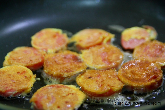 이렇게 숭덩숭덩 썰어서 계란물 묻혀 튀겨먹음