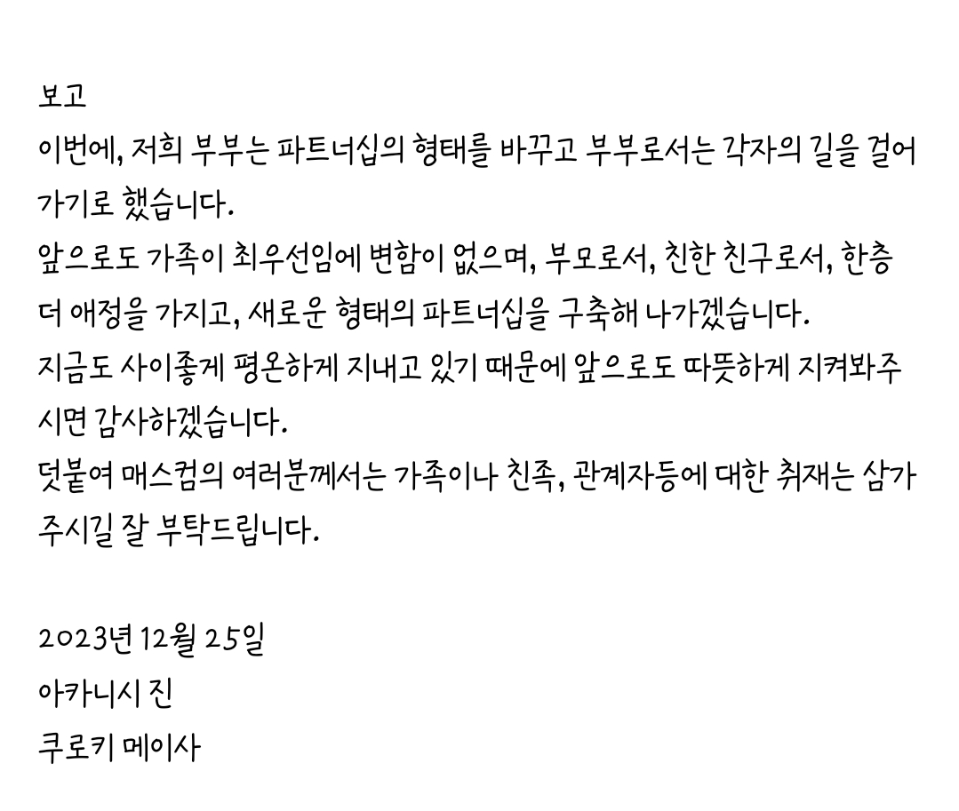 이혼 후 2년 뒤 아카니시 진이 여배우와 열애설이 떴는데