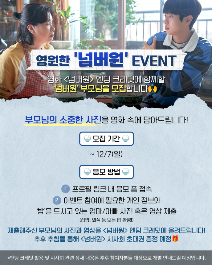 엔딩 크레딧에 올릴 부모님 사진 모집 중인 영화 <넘버원>
