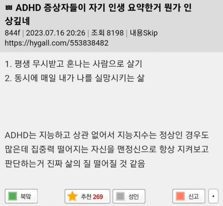 작성자상실과성실 작성시간 25.12.02 근데 그래도 요즘 adhd들 많아서 좀 위안되는것도 있어….