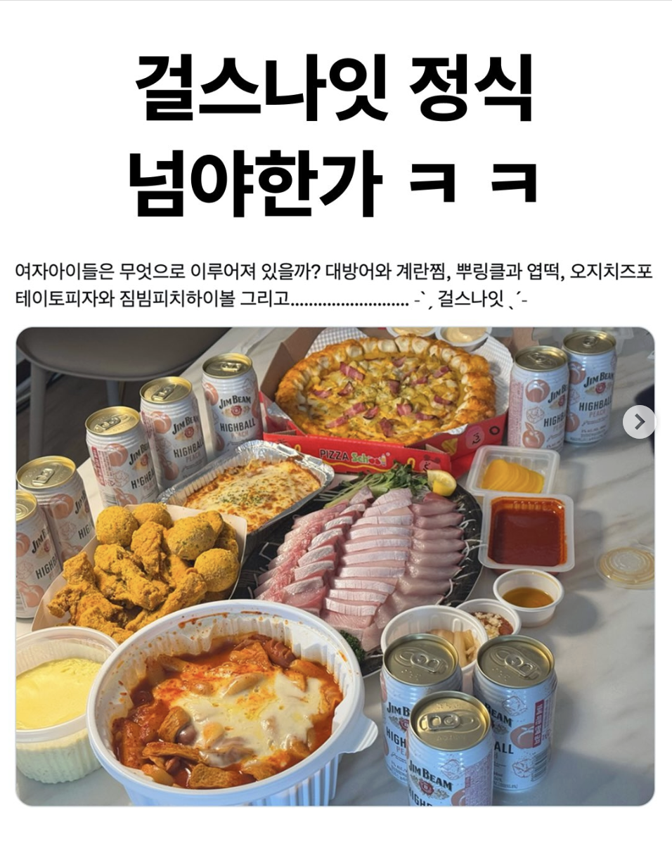 [기타]너무 자극적이다 말 나오는 K-걸스나잇 근황 작성자올프댱|작성시간25.12.02|조회수29,046 목록 댓글 77 글자크기 작게가 글자크기 크게가 출처: 여성시대 (올프댱)고자극섹시푸드떼샷뷰 보면서 + 편한 친구들이랑 + 연말 감성으로 + 밤새 + 수다이 자극적인 조합이 주는 도파민 때문에 걸스나잇 못 참는 사람 여럿일 듯ㅋㅋㅋㅋㅋㅋ 다음검색 현재 게시글 추가 기능 열기 북마크 공유하기 신고 센터로 신고 댓글 댓글 77 댓글쓰기 답글쓰기 댓글 리스트 작성자라즈베ㄹㅣ | 작성시간 25.12.02 진짜 내가 좋아하는것만 모아놨네 작성자냥르장머리 | 작성시간 25.12.02 개미쳣다 넘나 부럽고 작성자enigma | 작성시간 25.12.03 진짜 이런게 입맛 싹도는데 작성자언뇽허삽나까... | 작성시간 25.12.03 sexy가 절로나오네 작성자마루초이 | 작성시간 25.12.12 섹시푸드나잇 댓글 전체보기