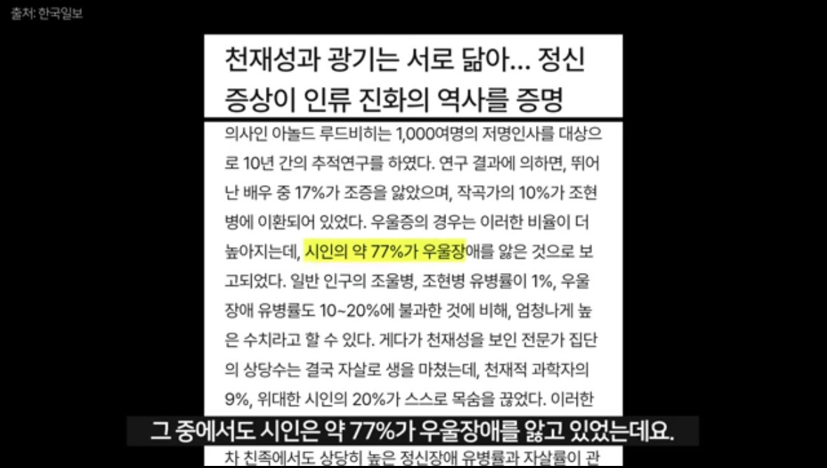 작성자까뮈 작성시간 25.12.03 하... 난 오히려 반대로 우울감을 잘 못느끼는 성격인데 그래서 창의력도 낮은가보다... 근데 진짜 가끔씩 우울할 때 느껴지는 감정이랑 그런 부분에서 영감같은게 나오긴 해