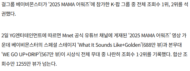 1위 베이비몬스터 스페셜 스테이지 ‘What It Sounds Like + Golden’