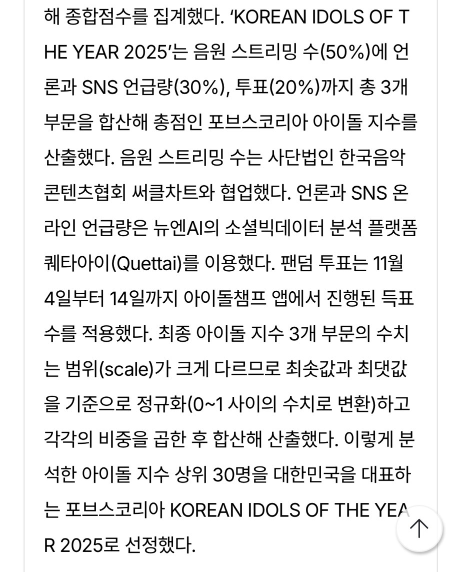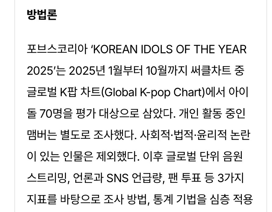 [포브스코리아 2025년 한국 아이돌 순위]