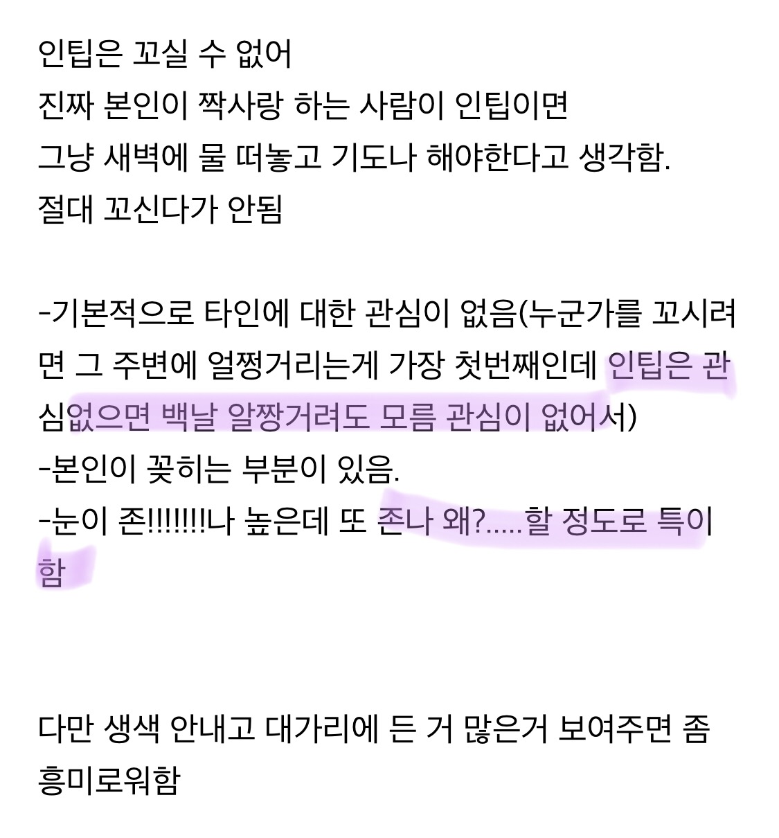 작성자나진짜부자다 작성시간 25.12.03 날잘파악해주고 끌어주는사람 나는 수동형이라 적극적인사람이 좋아 infp