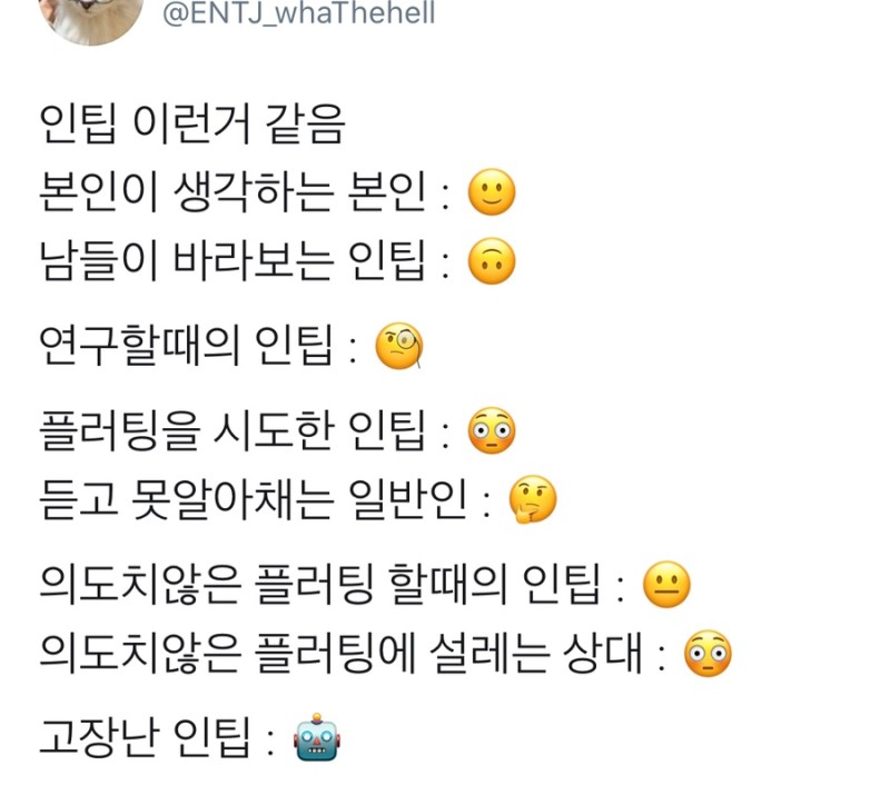 작성자미나미니 작성시간 25.12.03 entp 내가 하자는거 같이 재밌게 해주고 똑똑하거나 웃기면 됨