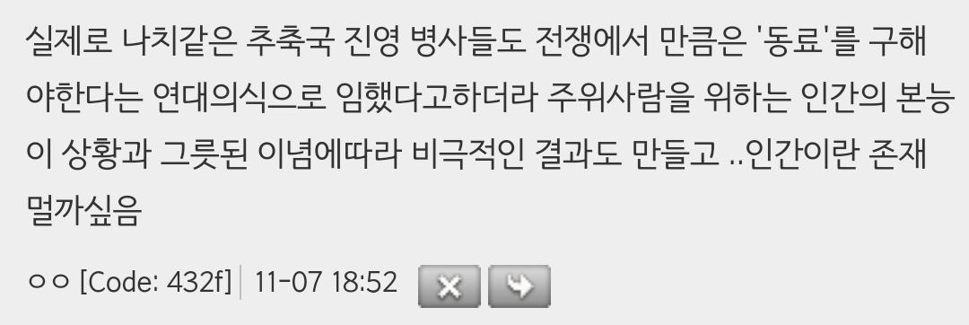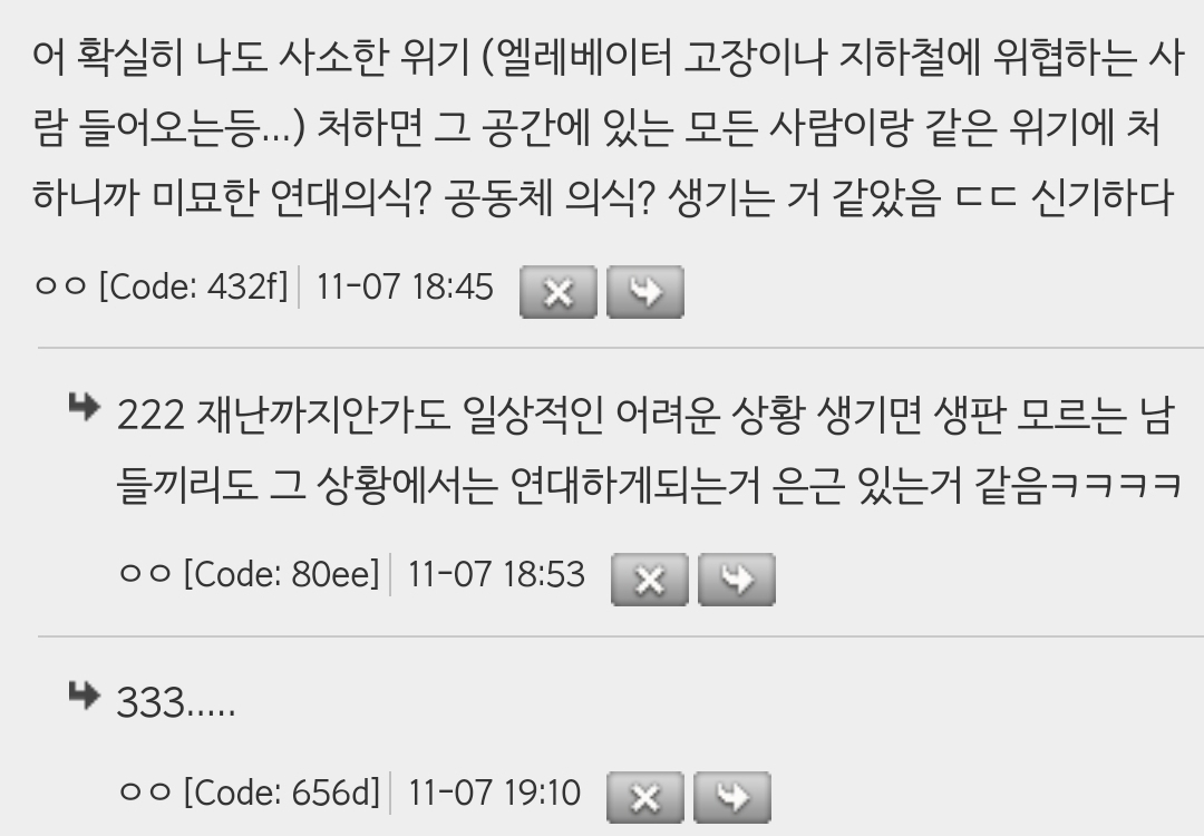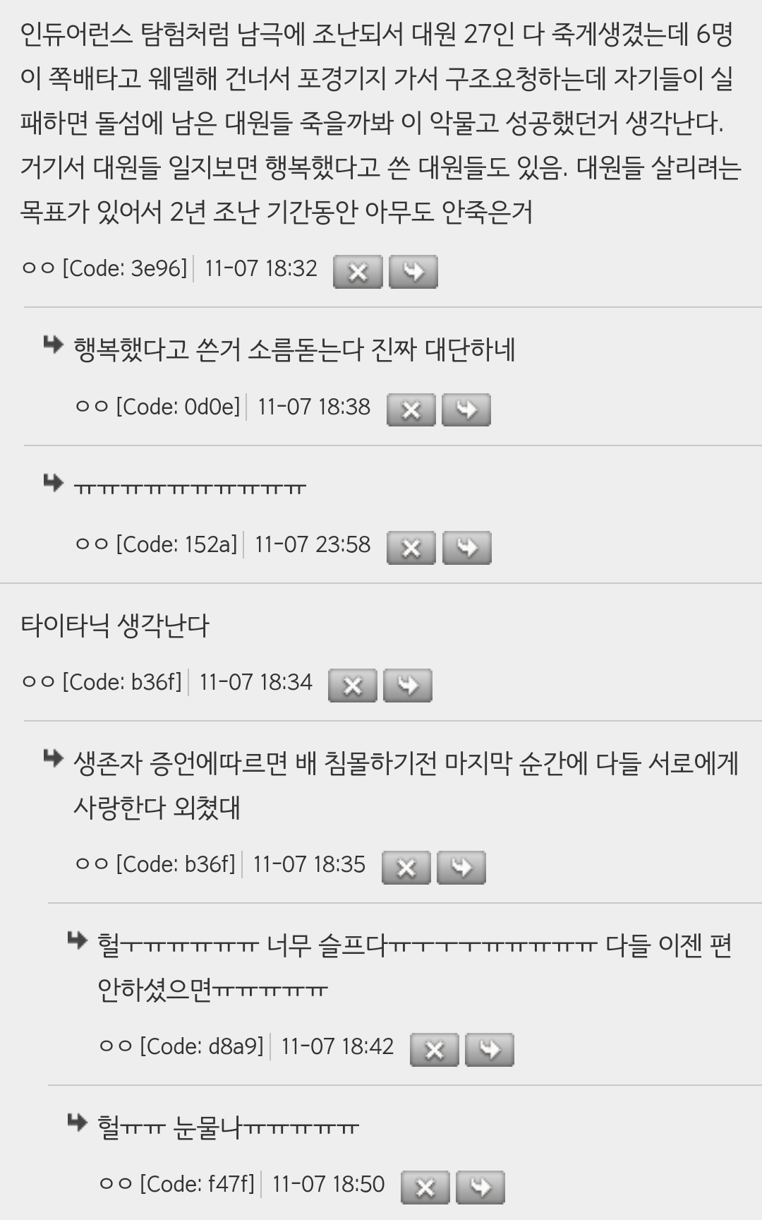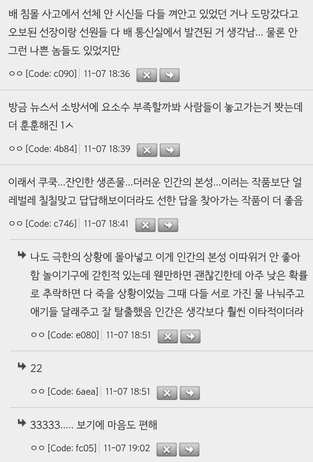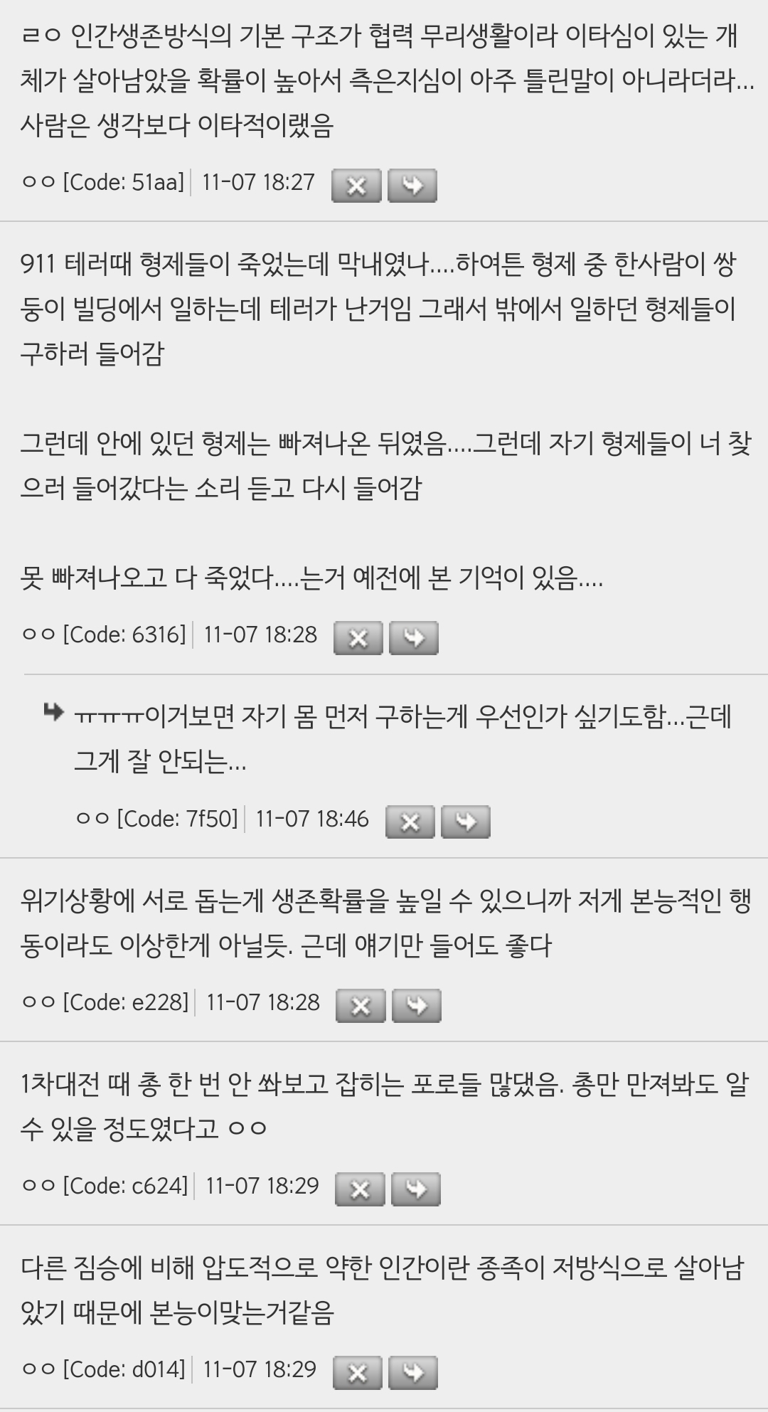 [스크랩] [흥미돋]실제 극한 상황일수록 사람은 남을 돕는대 작성자열빙어|작성시간25.12.02|조회수7,276 목록 댓글 14 글자크기 작게가 글자크기 크게가 출처 : https://hygall.com/425673536해연갤 - ㅃ 실제 극한 상황일수록 사람은 남을 돕는대해연갤, 해외연예갤러리, 영화, 드라마, 배우, 가수, 밴드, 모델, 연예인, 게임, 애니, 스포츠hygall.com 다음검색 스크랩 원문 : *여성시대* 차분한 20대들의 알흠다운 공간 현재 게시글 추가 기능 열기 북마크 공유하기 신고 센터로 신고 댓글 댓글 14 댓글쓰기 답글쓰기 댓글 리스트 작성자예준이 효자되세요 | 작성시간 25.12.03 눈물나ㅜㅜ 작성자업뽀빔 | 작성시간 25.12.03 극한 상황까지 안 가도 사소한 부분에서 타인의 도움을 받거나 도움주는 모습을 몇번봐서 난 이거 맞말같음 ㅠ 그러니 너무 세상살이 팍팍하다고 생각하지마ㅠ 작성자띠용... | 작성시간 25.12.03 나 이래서 엑시트 정말 좋아했어... 작성자도remi파sol민 | 작성시간 25.12.03 인류애 충전… 작성자존나관대한여시 | 작성시간 25.12.03 감동 미쳤다 댓글 전체보기