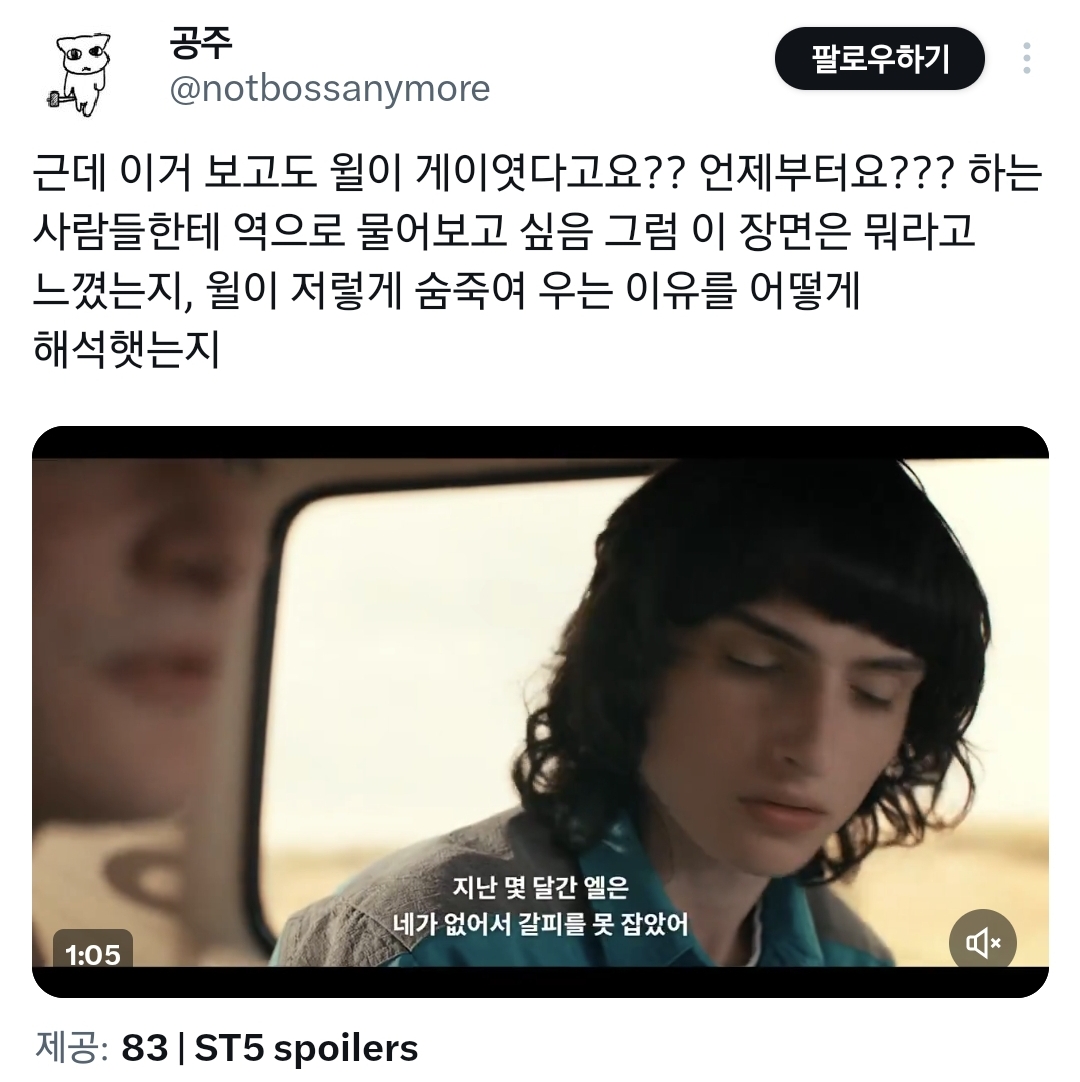 작성자지도 작성시간 25.12.03 이거 보고 알았어 이전 시즌에 짐작하게 하는 연출이 그냥 윌한테 편견 씌우는 걸로만 이해했고 마이크랑 나오는 씬은 하나도 눈치 못 챔 이번 시즌에서 왜 로빈이랑 짝지어서 그런 장면을 연출했을까 의문이 들긴 했는데 게이였다니