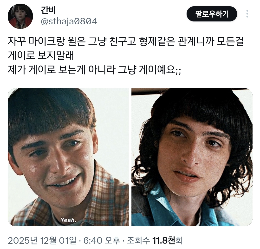 작성자보름달소원 작성시간 25.12.07 마이크 좋아하는건 4에서 대놓고 보여줘서 그 전까지 눈치 못챘다고 치고 1부터 윌이 다르다는거 (게이라는거) 조나단이랑 대화하는 것만 봐도 나오는데