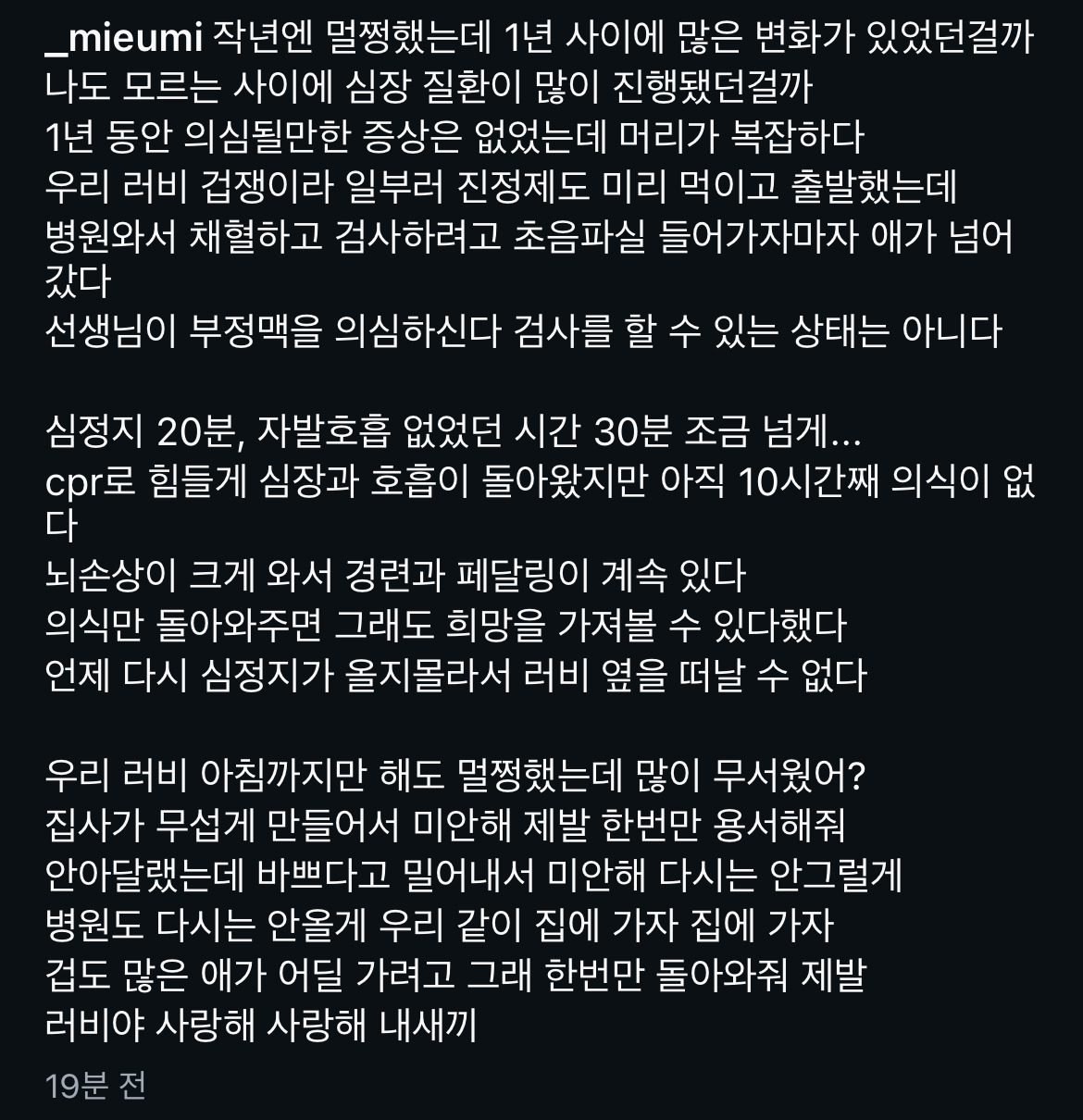 작성자쌈머쌈머 작성시간 25.12.04 러비야.. 진짜 마음아프다.. 눈물날것같아