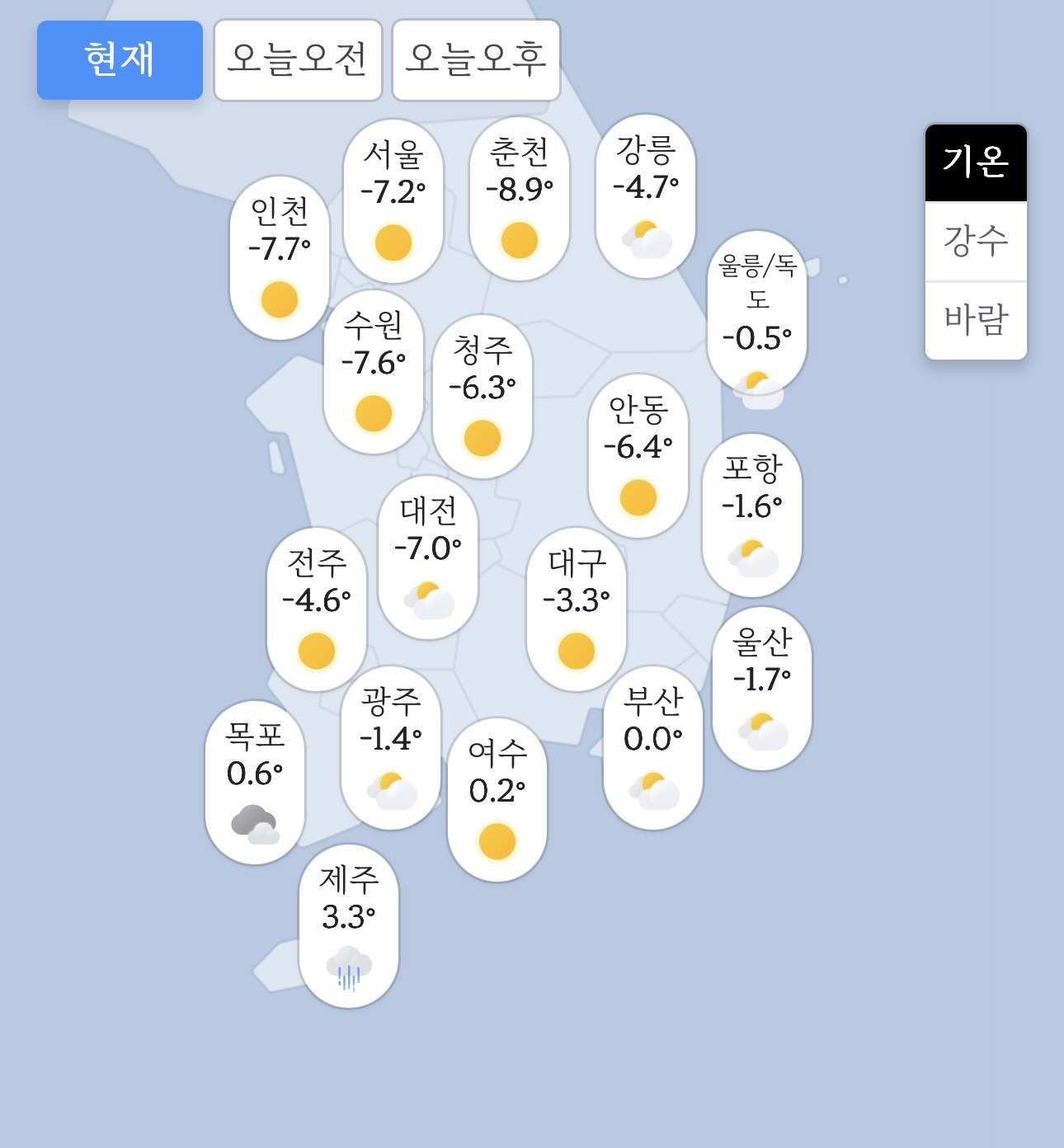 [흥미돋]12/3 오전 8시 기준 전국 날씨 작성자바나나스플릿구슬|작성시간25.12.03|조회수22,621 목록 댓글 21 글자크기 작게가 글자크기 크게가 출처: 여성시대 바나나스플릿구슬 다음검색 현재 게시글 추가 기능 열기 북마크 공유하기 신고 센터로 신고 댓글 댓글 21 댓글쓰기 답글쓰기 댓글 리스트 작성자그놈의유니버스 | 작성시간 25.12.03 진찌 대박임… 진짜 작성자항상행복만가득가득 | 작성시간 25.12.03 귀가 떨어져나갈 것 같아 ㅠㅠ 작성자MIKI | 작성시간 25.12.03 중간이 없네 ㅋㅋㅋ 갑자기 추워져서 적응도 안 됨 ㅠ 작성자몇일아니고며칠이라고요 | 작성시간 25.12.03 바람 미쳤음ㅠ 작성자수박juicy | 작성시간 25.12.03 개추워 진심 댓글 전체보기