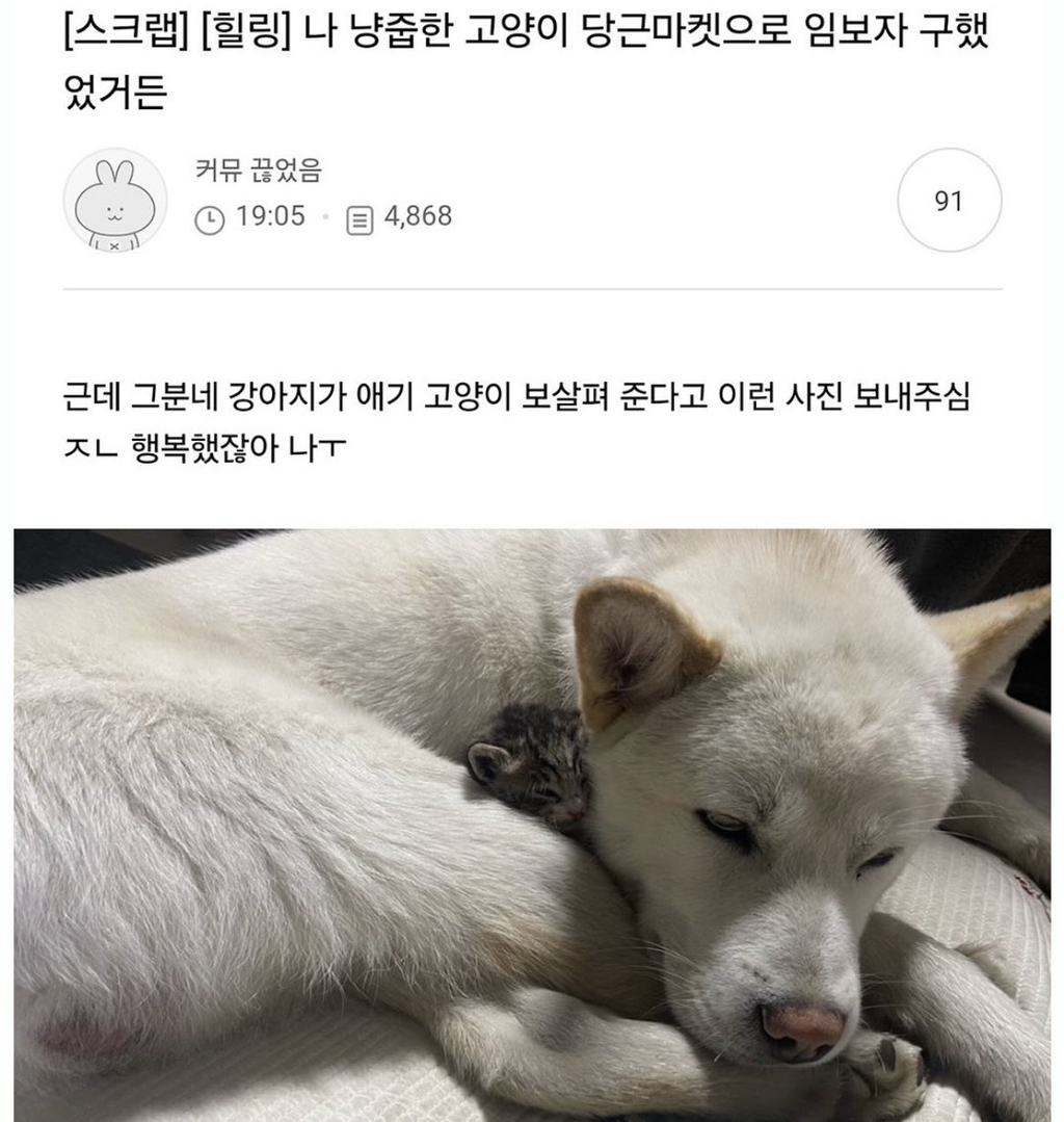 [스크랩] [힐링]나 냥줍한 고양이 당근마켓으로 임보자 구했었거든 작성자엿시씌|작성시간25.12.03|조회수56,218 목록 댓글 51 글자크기 작게가 글자크기 크게가 출처: https://x.com/wethaeko/status/1923044663637729328?s=46&t=4_TiM-tCmbdVoGn79hlqqw냥이가 강쥐 귀보다 작아요 다음검색 스크랩 원문 : *여성시대* 차분한 20대들의 알흠다운 공간 현재 게시글 추가 기능 열기 북마크 공유하기 신고 센터로 신고 댓글 댓글 51 댓글쓰기 답글쓰기 댓글 리스트 작성자토리건강하자 | 작성시간 25.12.03 아 오늘 우울했는데 갑자기 행복해짐ㅜ 작성자나는태견 | 작성시간 25.12.03 힐링ㅠㅠㅠㅠㅠㅠㅠ 작성자대파크림베이컨파스타 | 작성시간 25.12.04 임보는 보내야 하는 건데.. 저러고 있는데 어떻게 보내 내가 키워야지ㅠ 작성자상사싫어 | 작성시간 25.12.04 이건 키워야지 어떻게 보내…ㅠㅠㅠㅠㅠㅠㅠ 작성자나애우주 | 작성시간 25.12.11 와… 댓글 전체보기