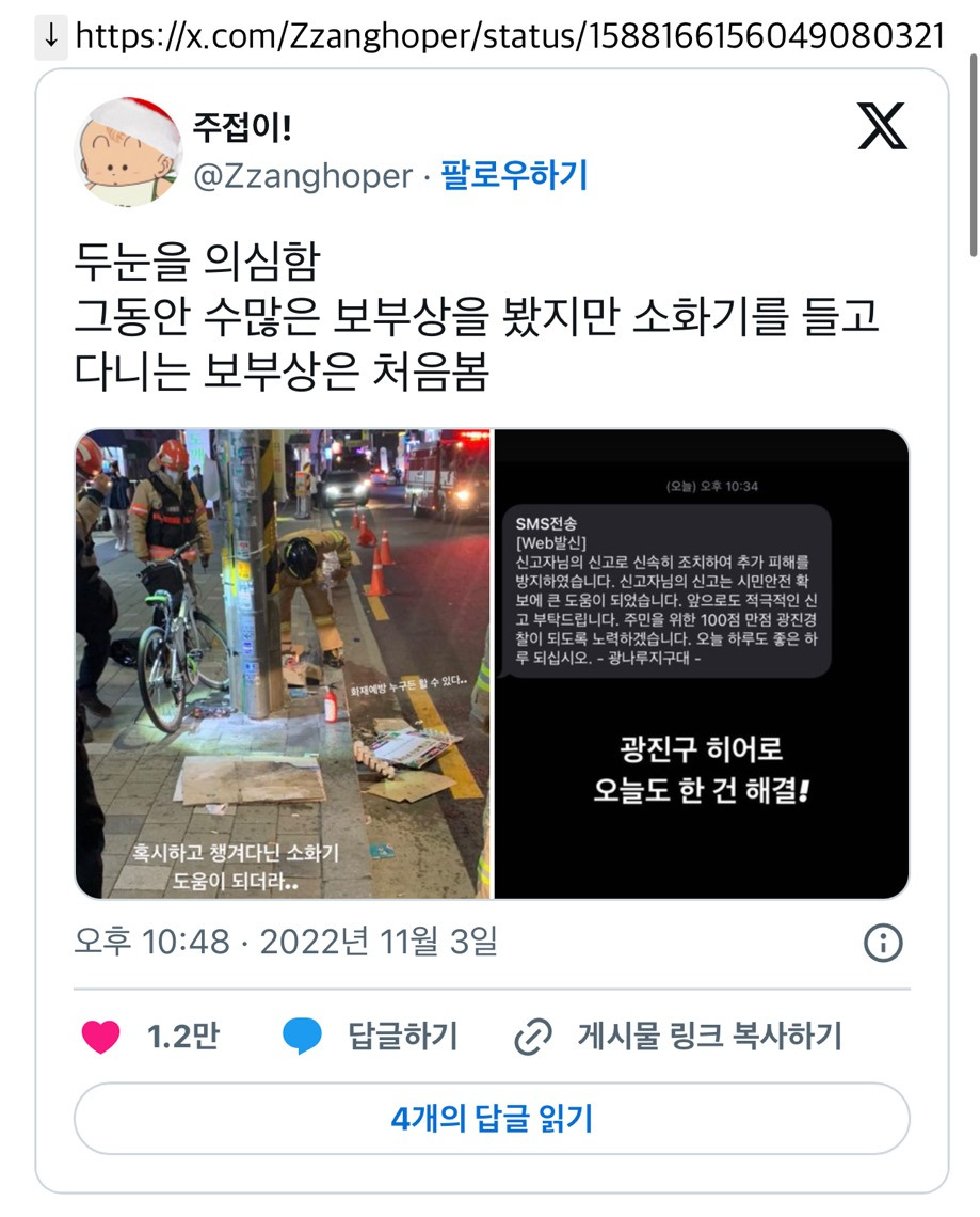 [흥미돋]이 기억으로 평생을 살아갈 부보상 작성자은조|작성시간25.12.04|조회수29,369 목록 댓글 26 글자크기 작게가 글자크기 크게가 출처: https://x.com/Zzanghoper/status/1588166156049080321 다음검색 현재 게시글 추가 기능 열기 북마크 공유하기 신고 센터로 신고 댓글 댓글 26 댓글쓰기 답글쓰기 댓글 리스트 작성자700... | 작성시간 25.12.04 ㅋㅋㄱㄱㄱㄱㄱㅋㄱㄱㅋ ㅋㄱㅋㄱㄱㄱㄱ아 작성자여기보걿아 | 작성시간 25.12.04 오 부보상.. 작성자내 꿈은 돈 많은 백수 | 작성시간 25.12.04 와대박 작성자볼케이노감자 | 작성시간 25.12.04 난 가위랑 데일밴드 충전기 상비약정도만 들고다녀도 개뿌듯한데... 멀었다 나는 작성자조실세 | 작성시간 25.12.04 근력 대박 많으신가보다ㄷㄷ 소화기를 들고다녀 ㄷ ㄷ 댓글 전체보기