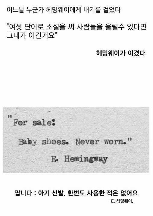 [눈물한방울]소설가 헤밍웨이에게 건 내기 작성자자정잉어|작성시간25.12.04|조회수20,953 목록 댓글 14 글자크기 작게가 글자크기 크게가 출처: 여성시대 자정잉어.....🥹 다음검색 현재 게시글 추가 기능 열기 북마크 공유하기 신고 센터로 신고 댓글 댓글 14 댓글쓰기 답글쓰기 댓글 리스트 작성자76초ㄷ6 | 작성시간 25.12.04 팝니다. 제 실내 자전거. 한번도 안탄. 샤갈... 답댓글 작성자아페롤 슈피츠 | 작성시간 25.12.04 ㅋㅋㅋㅋㅋ 작성자오은영박사 | 작성시간 25.12.04 아기가 우량아 호동햄이라서 사이즈 미스난거 작성자큐티쁘띠강쥐 | 작성시간 25.12.04 아기가 강호동 작성자사랑이귀여워 | 작성시간 25.12.04 알고 잇는 글인데도 눈물나 댓글 전체보기