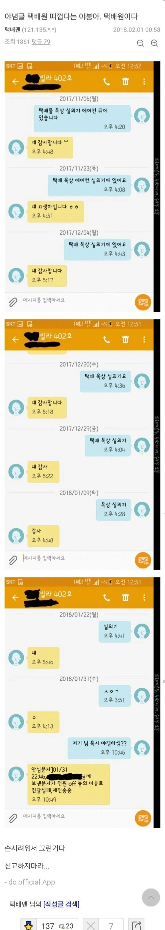 [스크랩] [흥미돋]항상 실외기에 택배놓는 택배기사 작성자스냅랙|작성시간25.12.04|조회수40,872 목록 댓글 4 글자크기 작게가 글자크기 크게가 다음검색 스크랩 원문 : 樂soccer 현재 게시글 추가 기능 열기 북마크 공유하기 신고 센터로 신고 댓글 댓글 4 댓글쓰기 답글쓰기 댓글 리스트 작성자너무도아픈*는치질이었다는것을 | 작성시간 25.12.04 둘다 야갤하는꼬라지 작성자소울BLUE | 작성시간 25.12.04 ㅅㅂㅋㅋㅋㅋㅋ 똑같은 갤러리하는게 ㅈㄴ웃기네둘다 하는짓도똑같고ㅅㅂㅋㅋㅋ 작성자적당히할생각 | 작성시간 25.12.04 둘이 진짜 잘맞네 작성자레스타드 | 작성시간 25.12.04 아 날짜보니까 손시려울만 하긴 해 댓글 전체보기