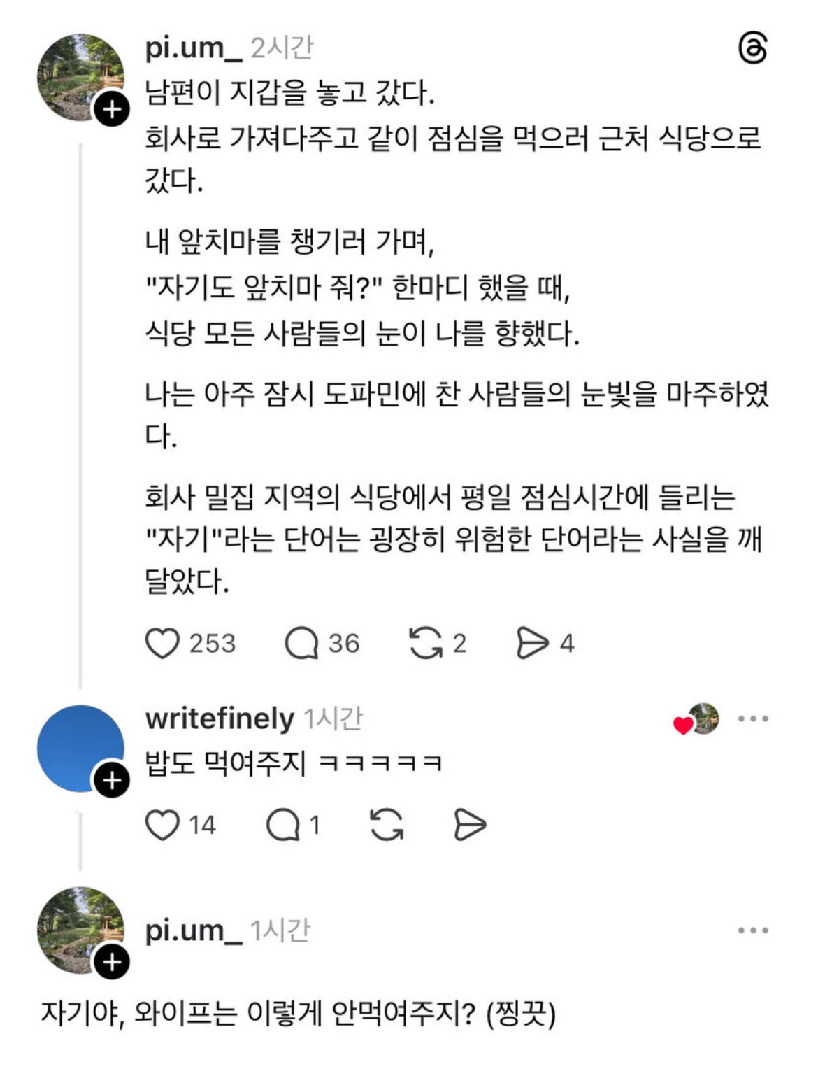 [스크랩] [흥미돋]점심시간 회사원들의 관심을 받는법 작성자flflf|작성시간25.12.04|조회수22,574 목록 댓글 53 글자크기 작게가 글자크기 크게가 다음검색 스크랩 원문 : 도탁스 (DOTAX) 현재 게시글 추가 기능 열기 북마크 공유하기 신고 센터로 신고 댓글 댓글 53 댓글쓰기 답글쓰기 댓글 리스트 작성자butterbear | 작성시간 25.12.04 뭔..걍 부부인갑다 하지 드라마퀸병 어떡하냐 진짜 작성자또 이러신다 | 작성시간 25.12.04 재밌다 ㅋㅋㅋㅋ 난 하수 직장인인가봐 작성자사르트르 | 작성시간 25.12.04 ㅋㅋ 난 귀 열려잇는편이라 쳐다보긴할듯 작성자얏얍호 | 작성시간 25.12.04 회사 다니면 개꿀잼이긴한데...ㅋㅋㅋㅋㅋㅋㅋㅋㅋㅋㅋㅋㅋㅋㅋ난 웃김 작성자Amoroso | 작성시간 25.12.04 암생각 안듬 댓글 전체보기