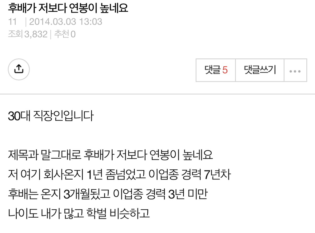 후배가 나보다 월급 더 받는 상황 다수 발생.