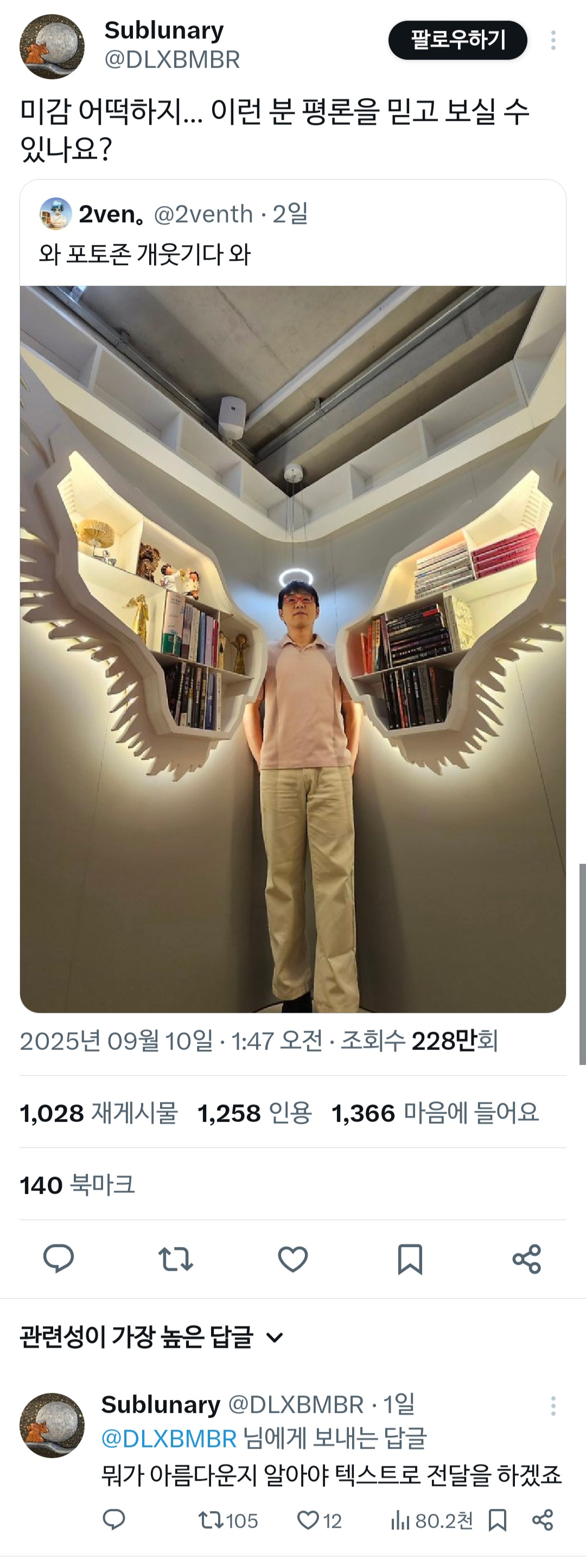 작성자짱변 작성시간 25.12.05 와 나 진짜 방시혁인줄 알았어 사족 없었으면 방시혁이 전시회 간 사진으로 알았을듯